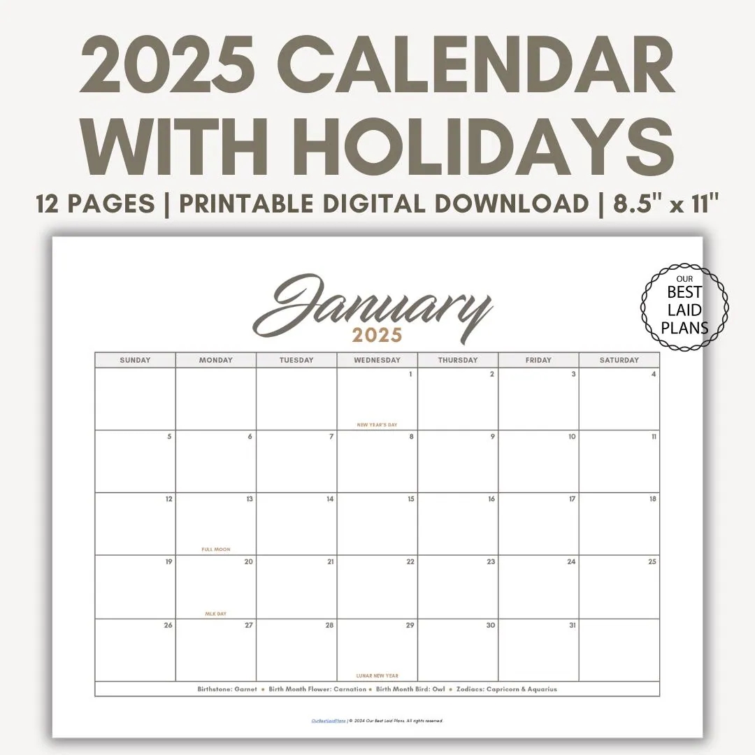 2025 Calendar Printable Landscape 2025 Monthly Bundle Calendar Printable Year 2025 12 Month Calendar 2025 Calendar With Holidays PDF Etsy