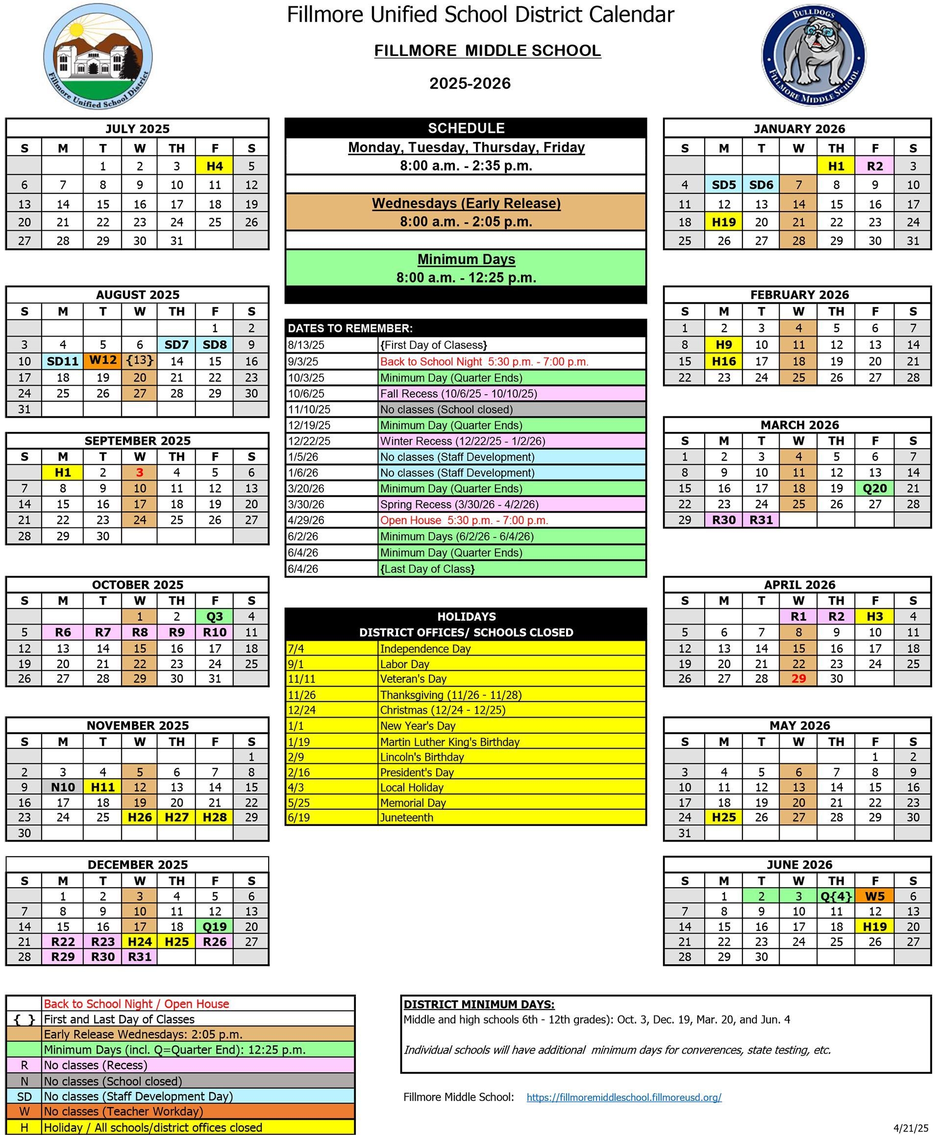 2025 26 Annual School Calendars English Spanish Family Resources And Engagement Fillmore Unified School District