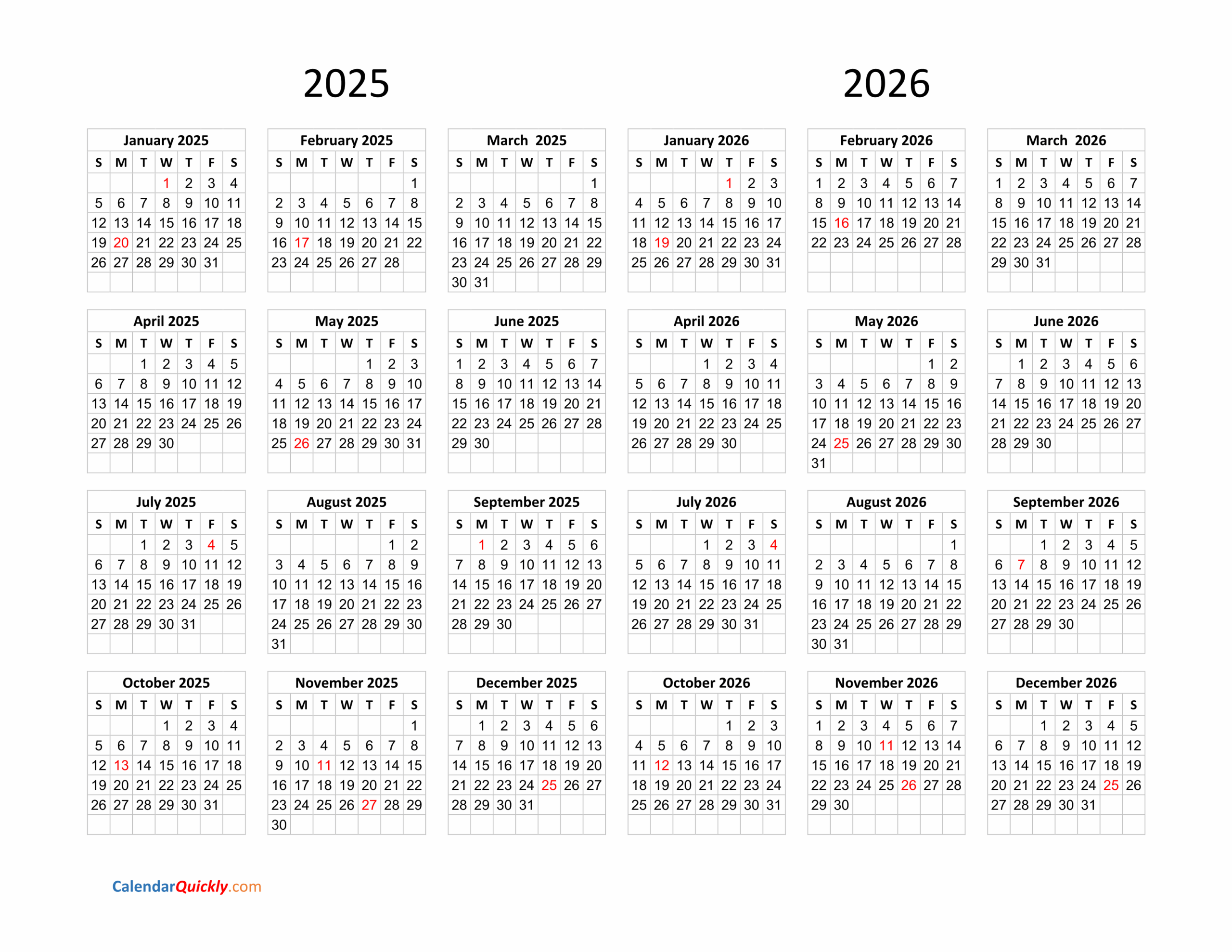 Calendar 2025 And 2026 On One Page Calendar Quickly