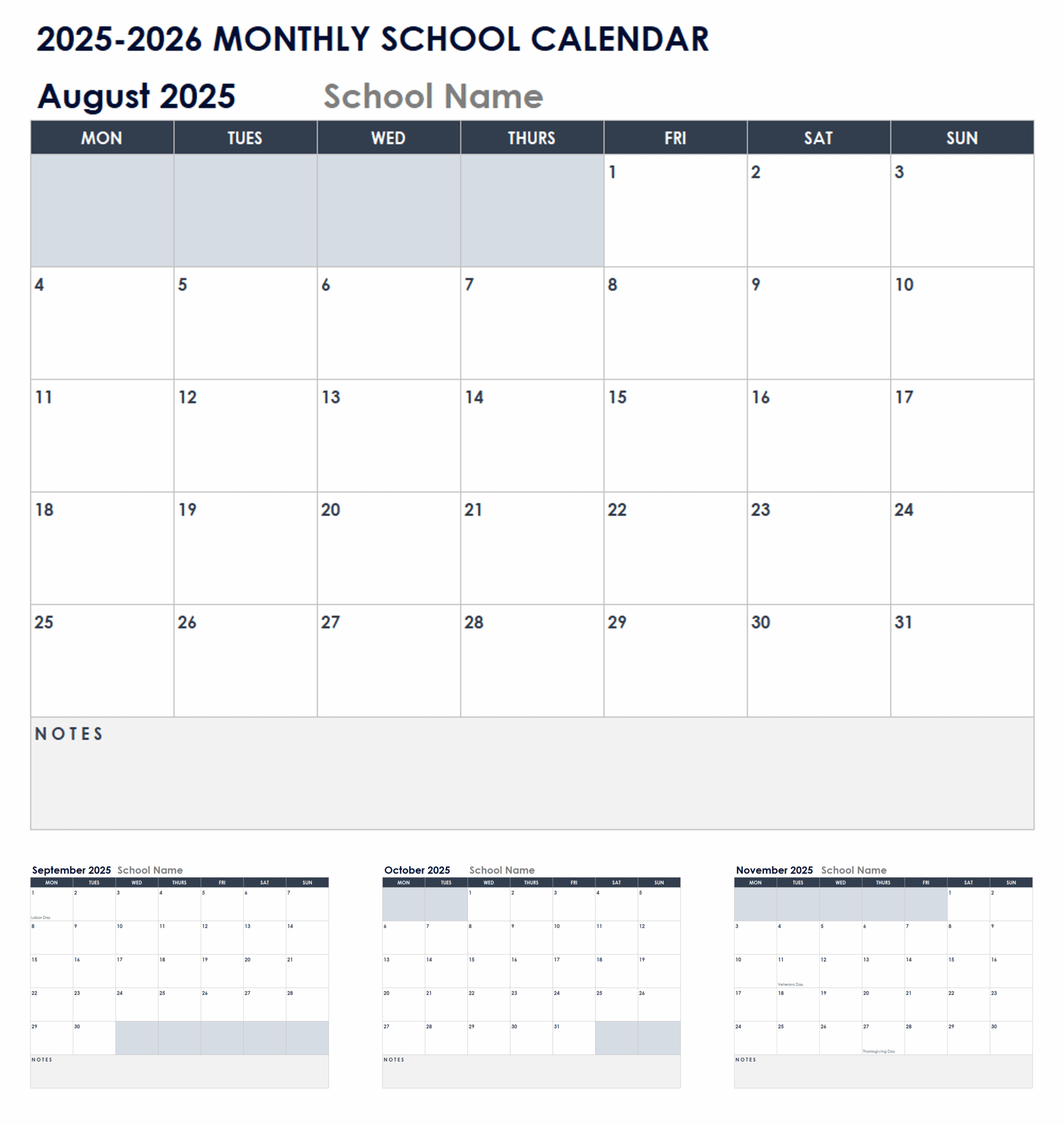 Academic Calendars 2025 2026 Free Printable PDF Templates