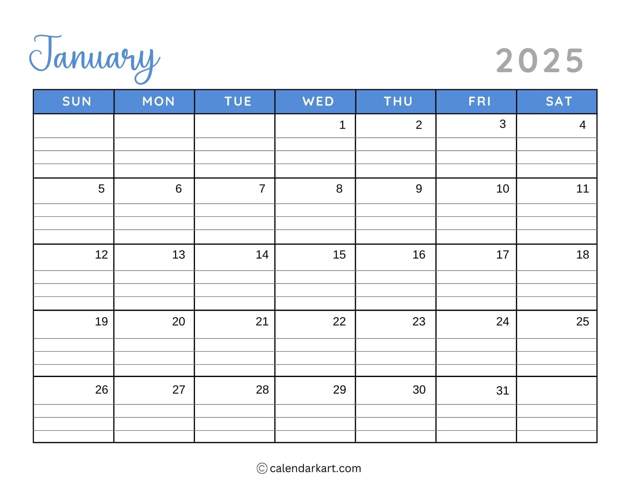 40 Printable January 2025 Calendars Free Pdf Calendarkart