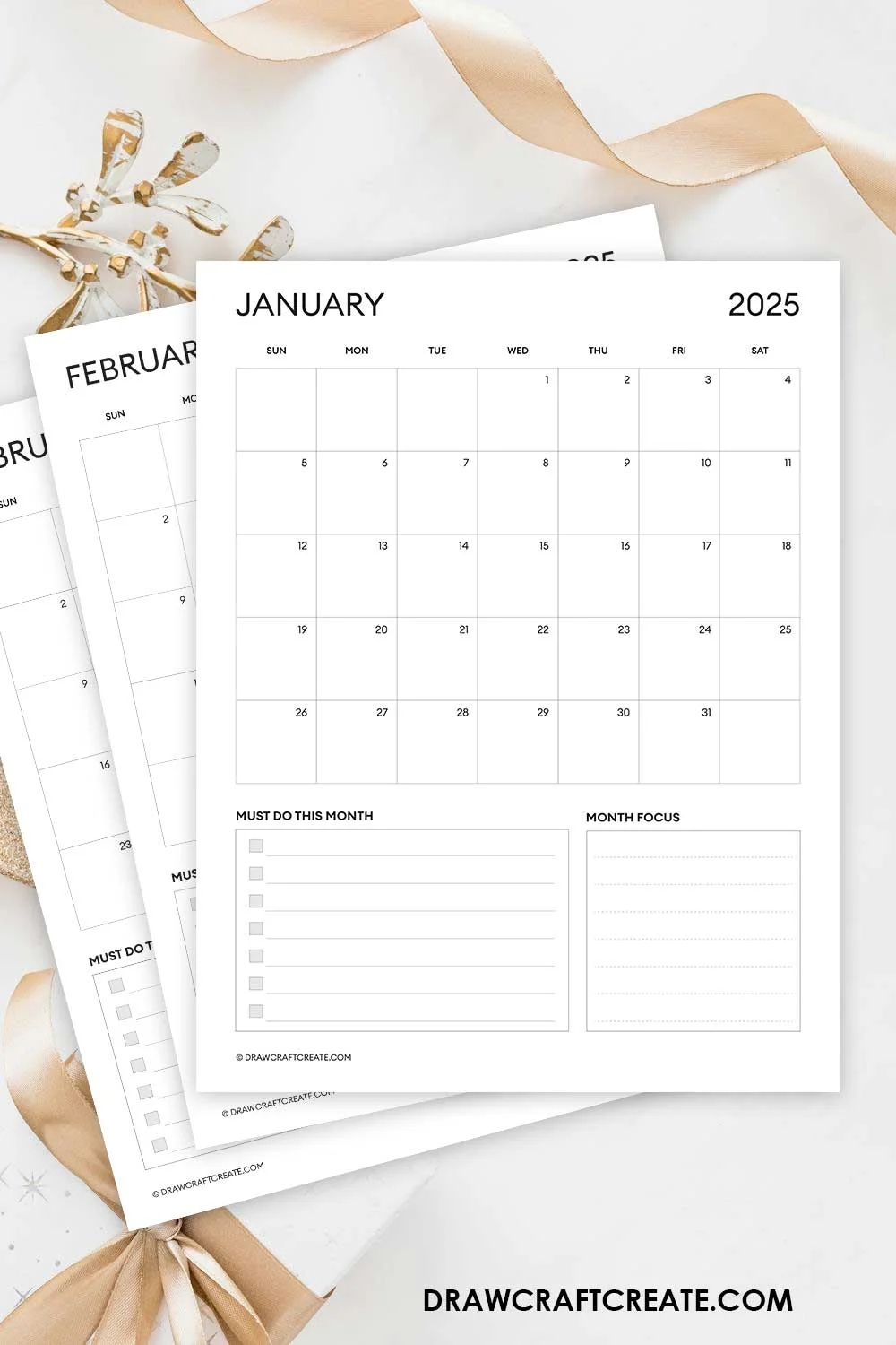 2025 Calendar Printable Free Template Vertical Draw Craft Create