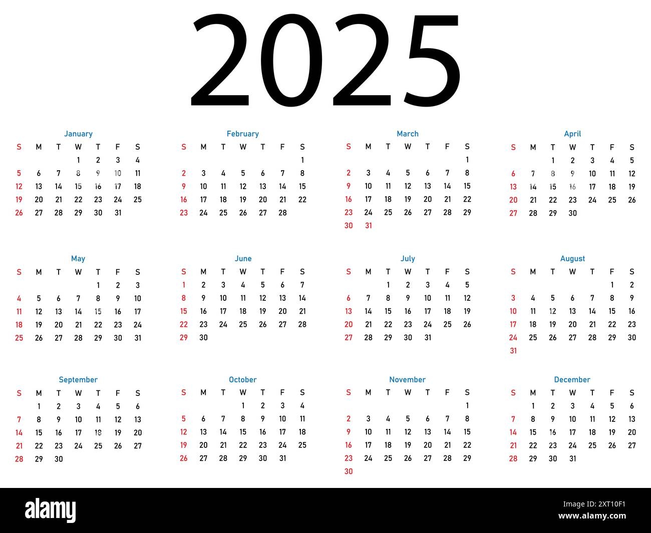 Calendar Template For 2025 Year Week Starts On Sunday Stock Vector Image Art Alamy