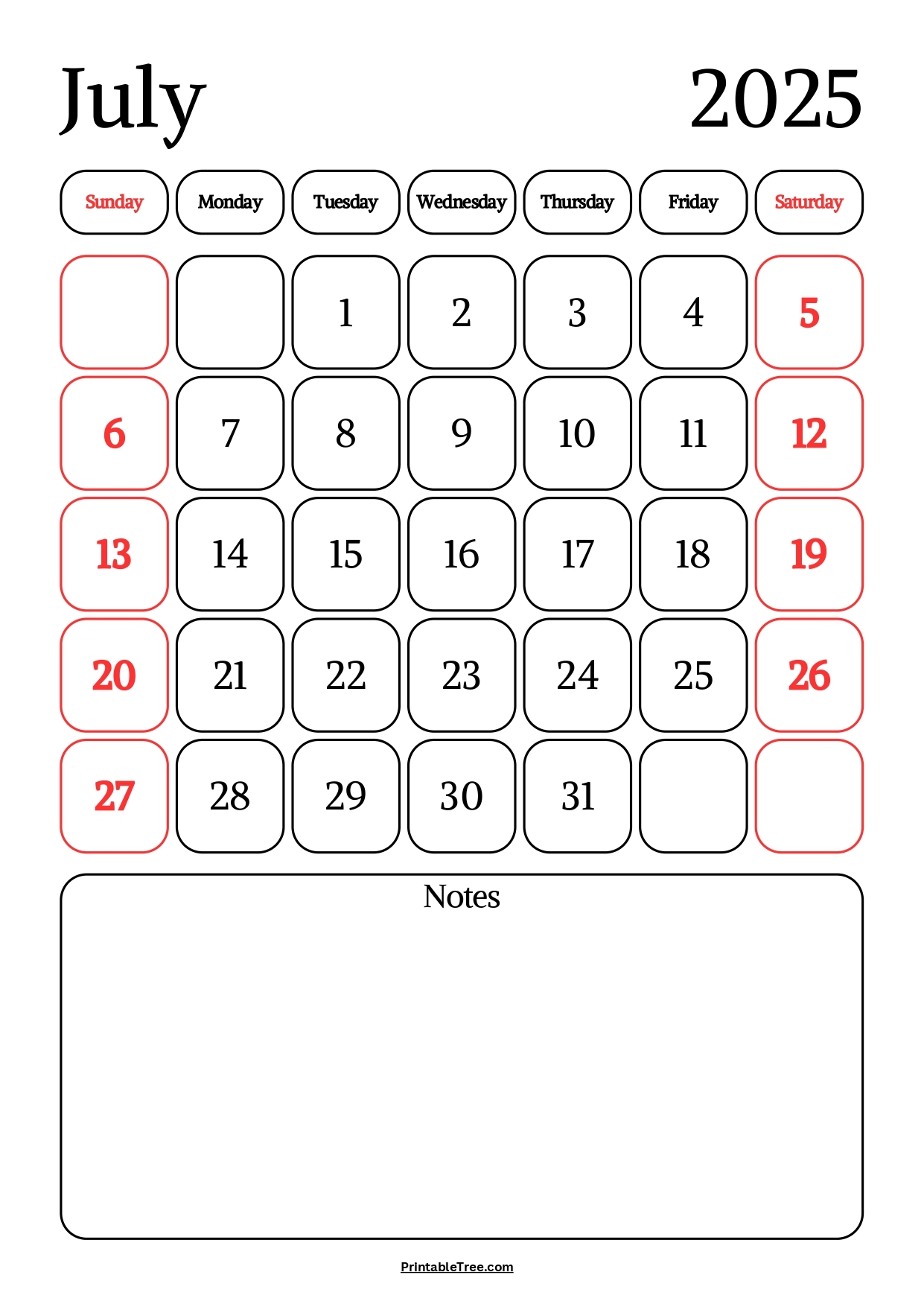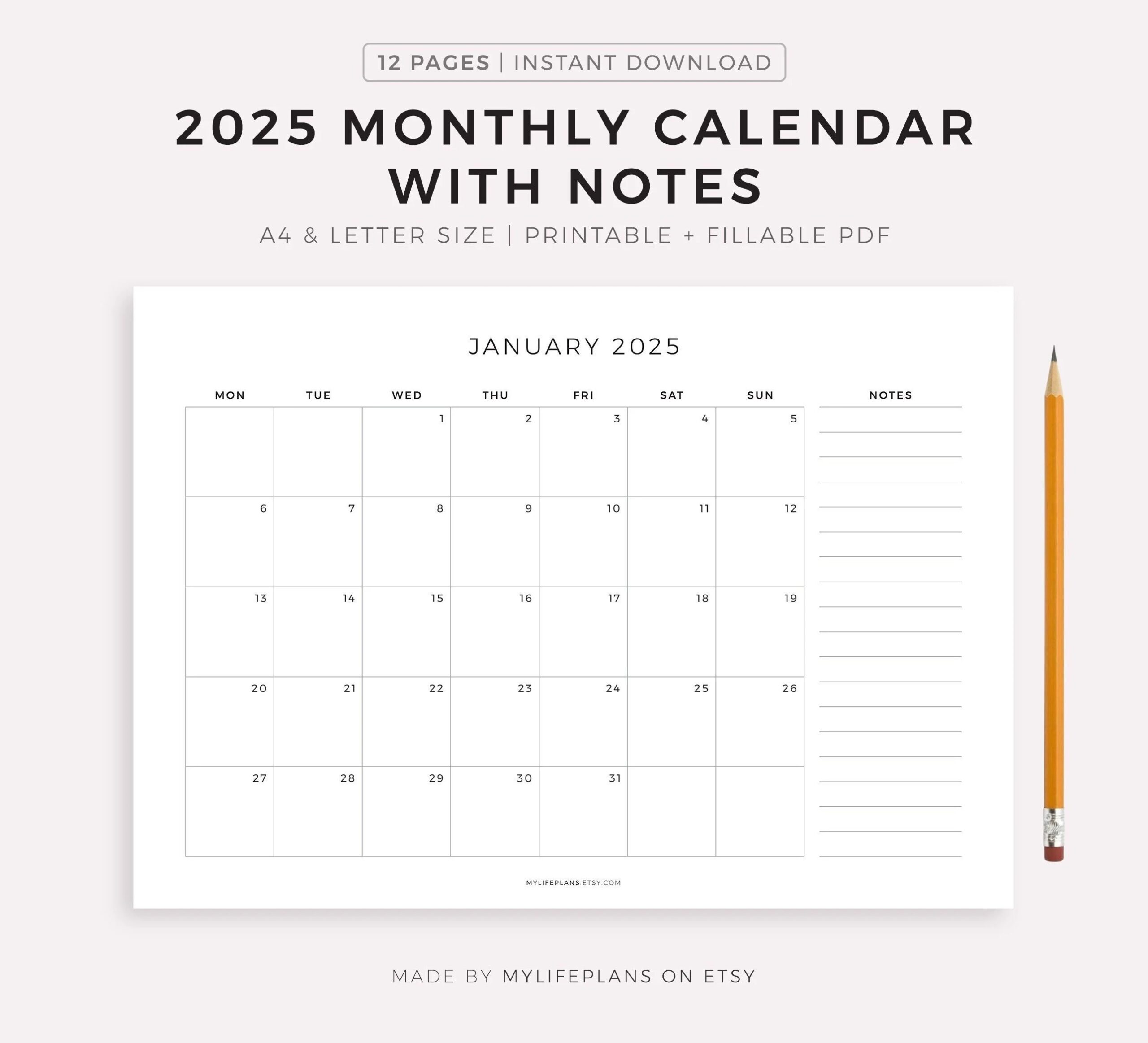 2025 Monthly Calendar With Notes PrintyBird