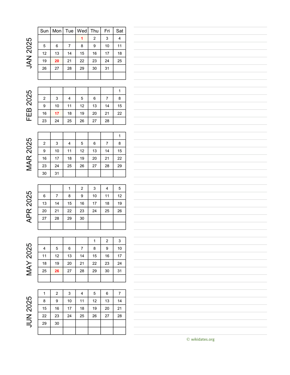 Yearly Printable 2025 Calendar With Notes WikiDates