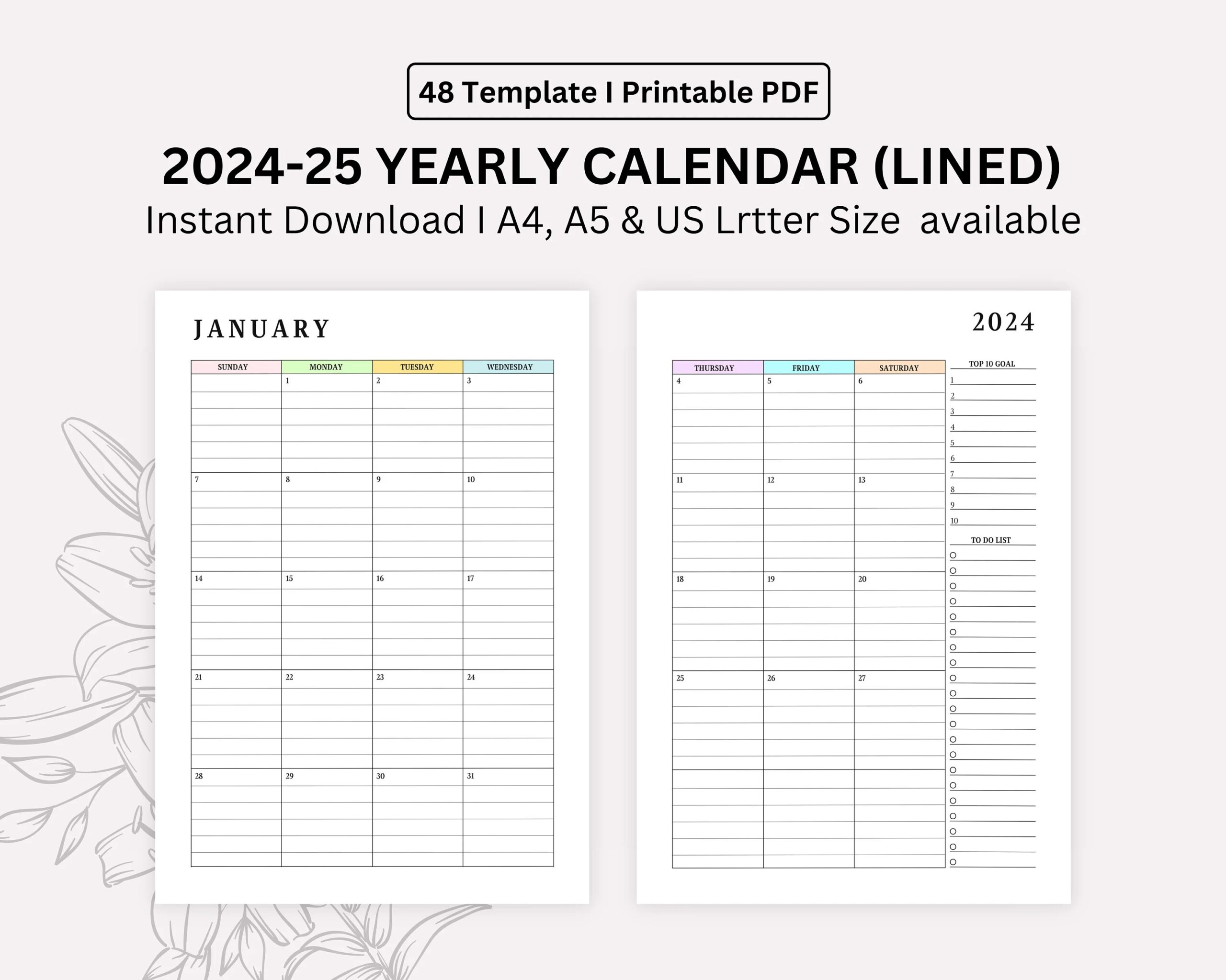 2024 2025 Monthly Lined Calendar Printable Dated Month On 2 Pages Month At A Glance A4 a5 letter half Instant Download Etsy