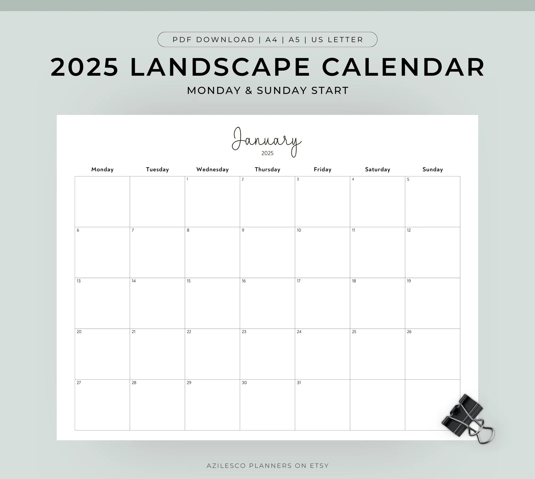 2025 Calendar Printable Landscape Minimalist Monthly Calendar 2025 Calendar Printable Etsy
