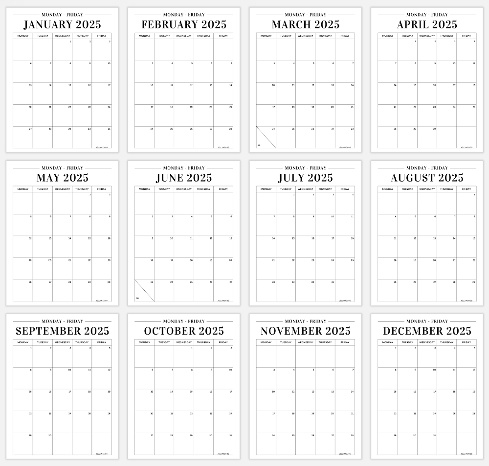 2025 Monday To Friday Calendar Printables Cute Free JellyMemos