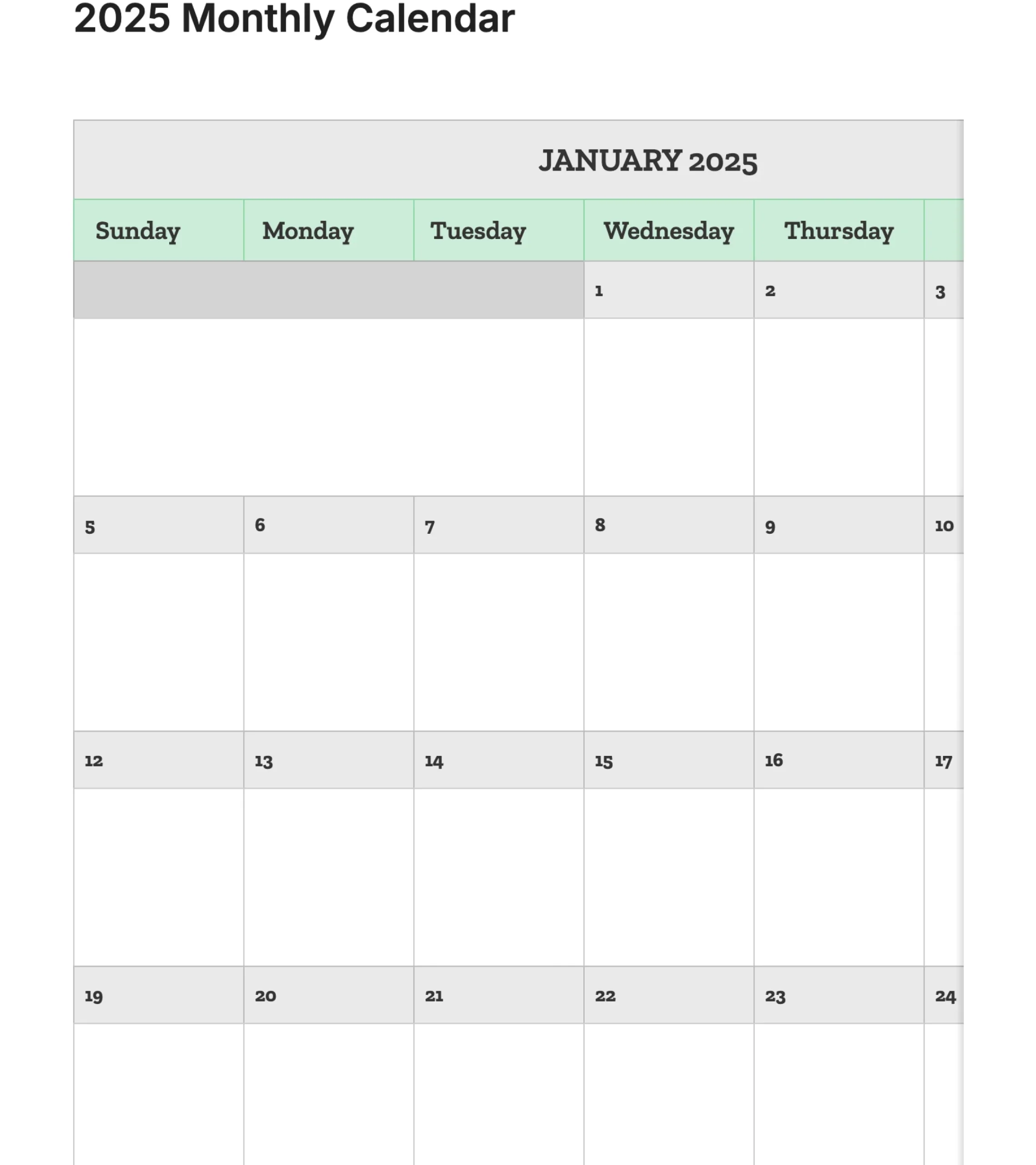 With a blank monthly calendar in Word for 2025, you can set goals, track your progress, and stay motivated throughout the year. Whether you’re aiming to improve your health, advance in your career, or simply make more time for yourself, having a visual representation of your monthly schedule can help you stay focused and on track.
