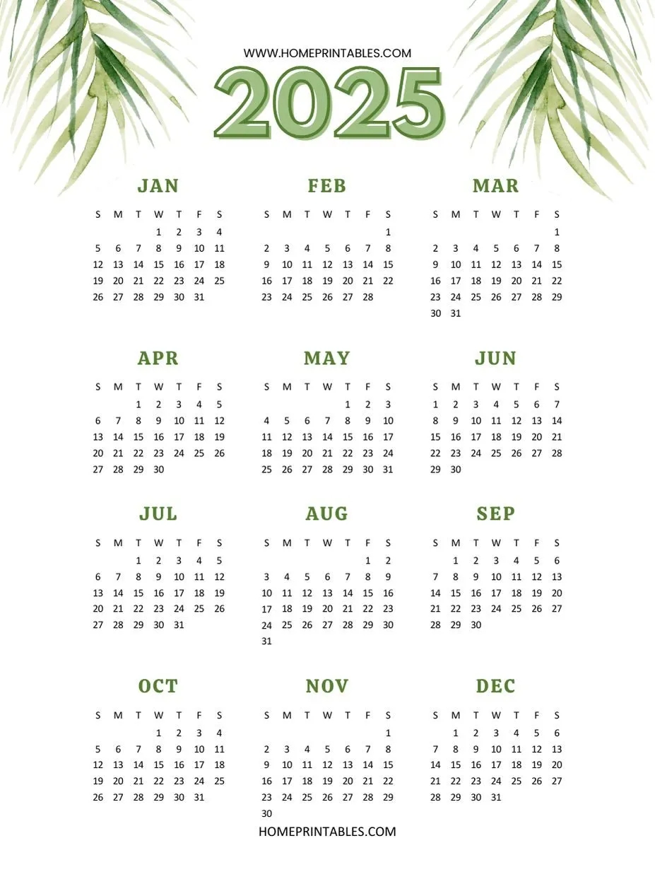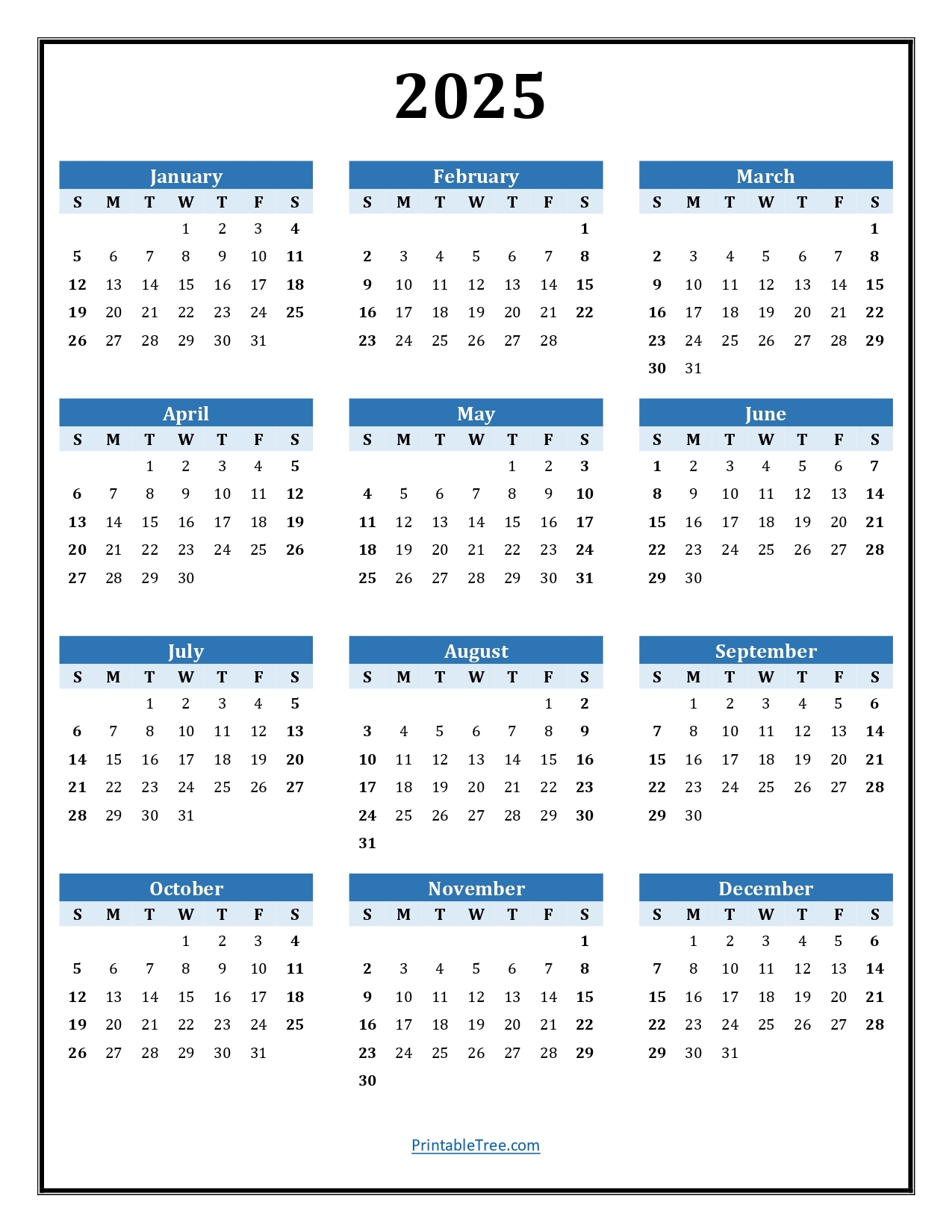 Yearly Calendar 2025 On One Page 40 Best Free Templates