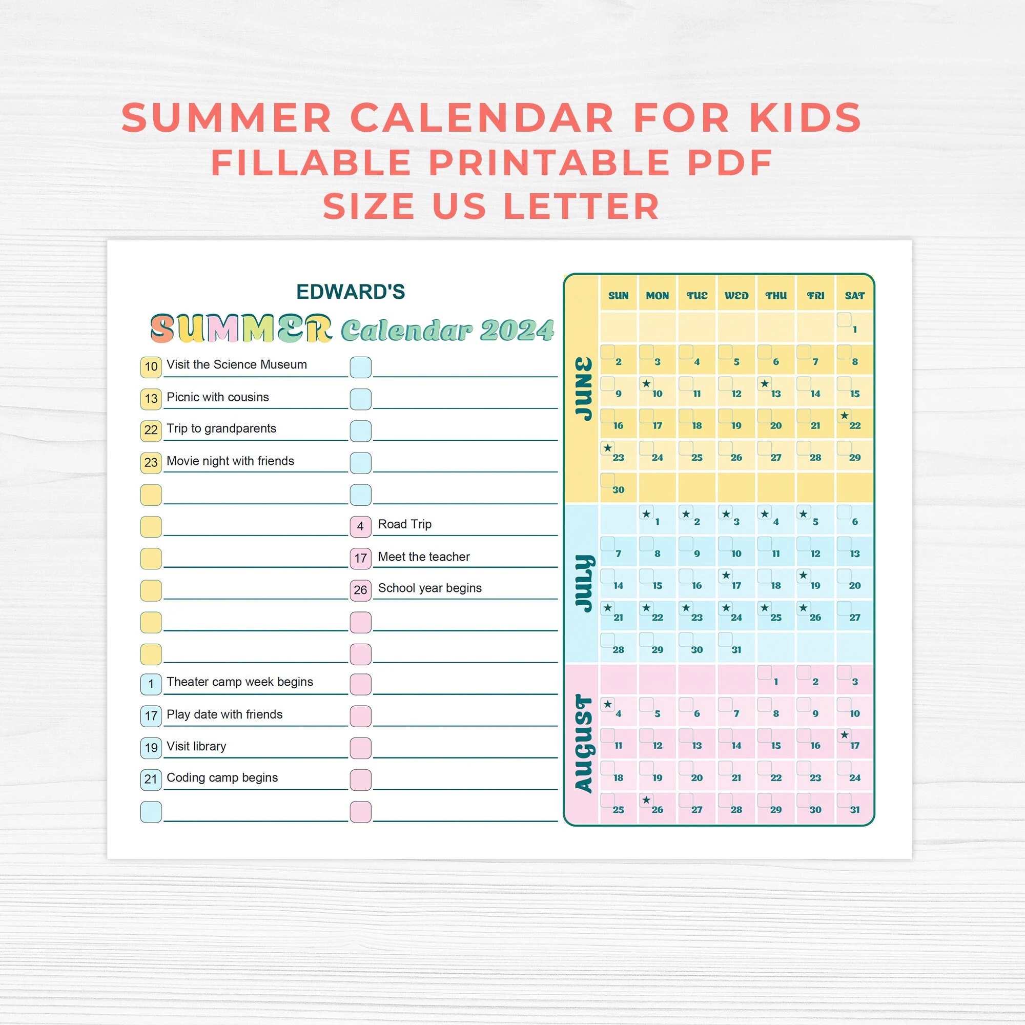 Fillable Summer Calendar For Kids Printable Summer Calendar 2025 Color Coded Mark The Calendar Organization For Kids Etsy Norway