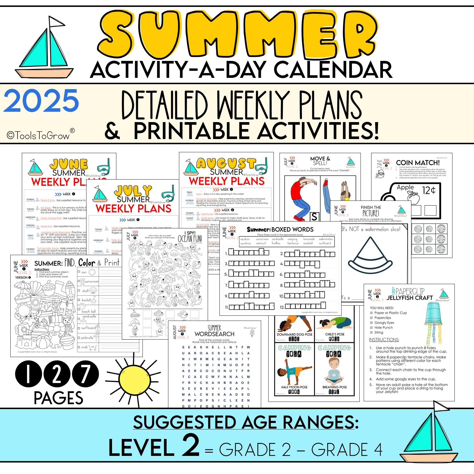 Giant 2025 Kids Summer Calendar Printable 24x36 Wall Poster With Coloring Fun Summer Activity Planner For Children Instant Download Etsy