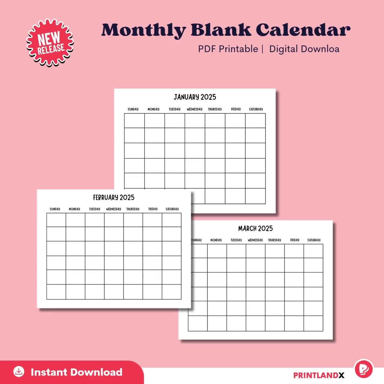 Monthly Calendar 2025 2025 Calendar Printable Blank Calendar 2025 Calendar Template 12 Month Calendar Month At A Glance 2024 Planner Etsy