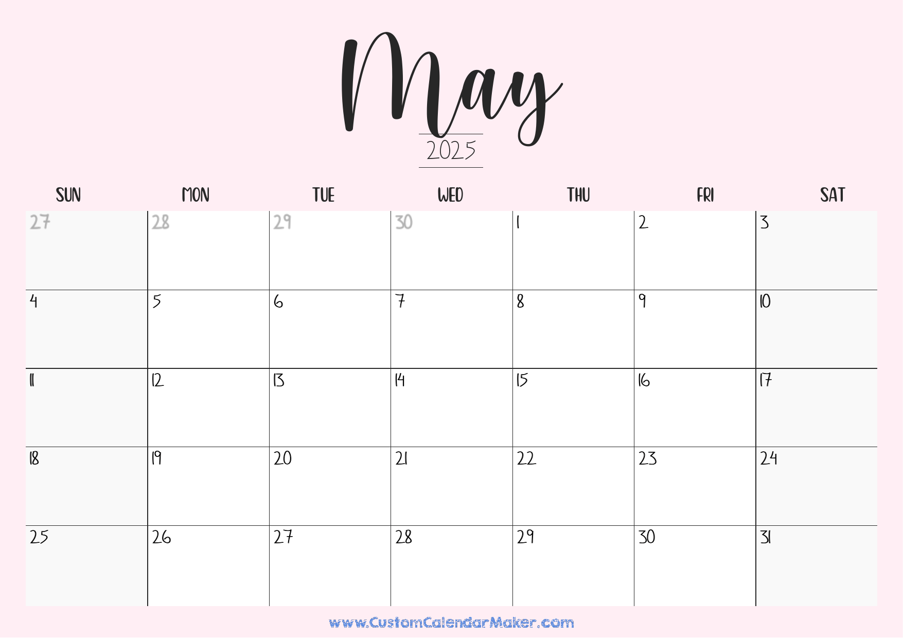 May 2025 Printable Calendar 23 Free Templates PDF Custom Calendar Maker
