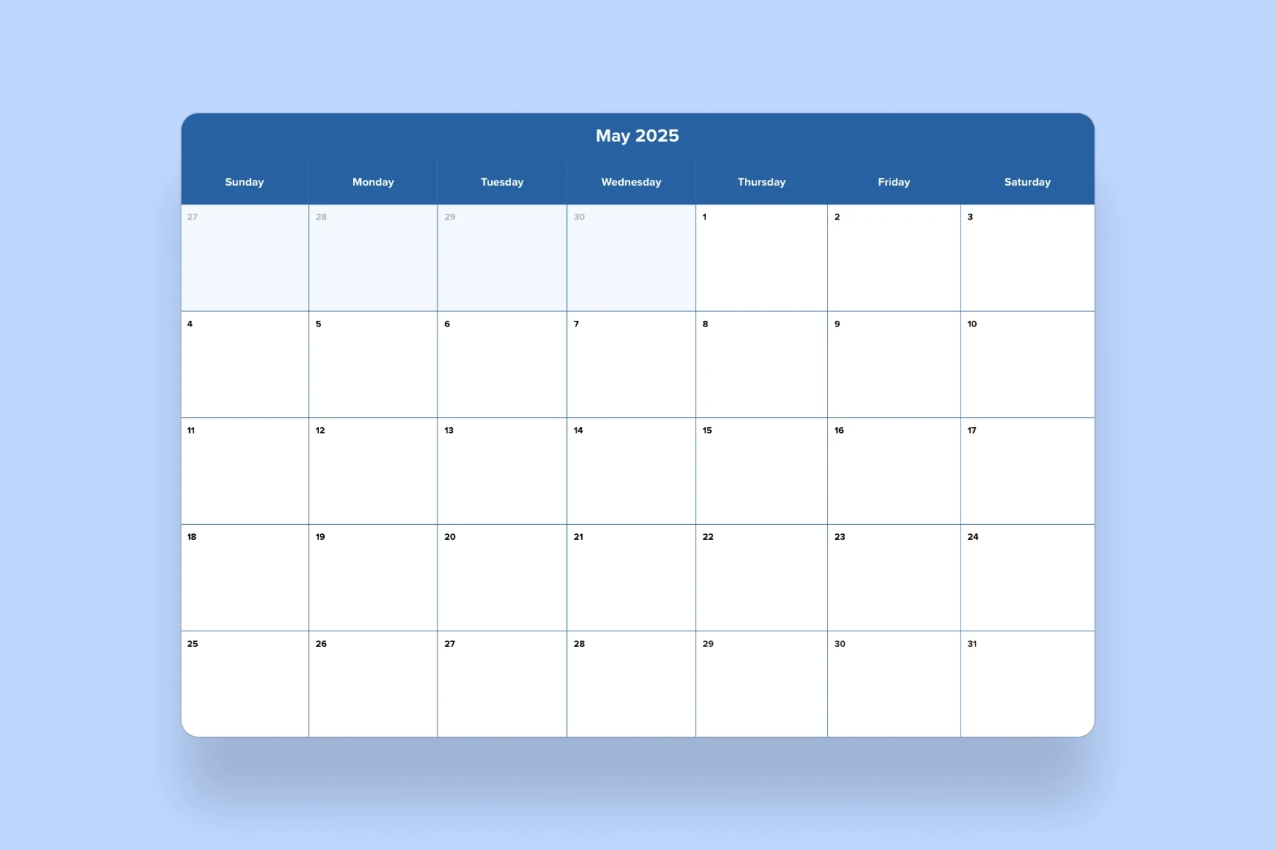 May 2025 Calendar Template