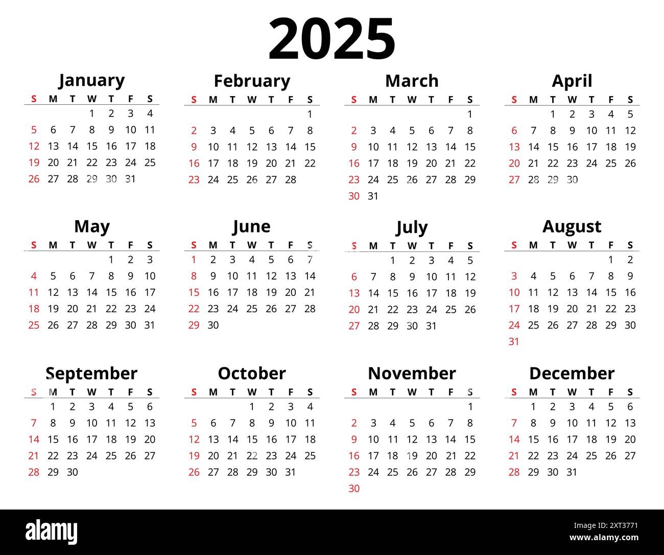 2025 Month Printable Calendar Modern Vector Horizontal Template Illustration Plan Your Year With Style Stock Vector Image Art Alamy