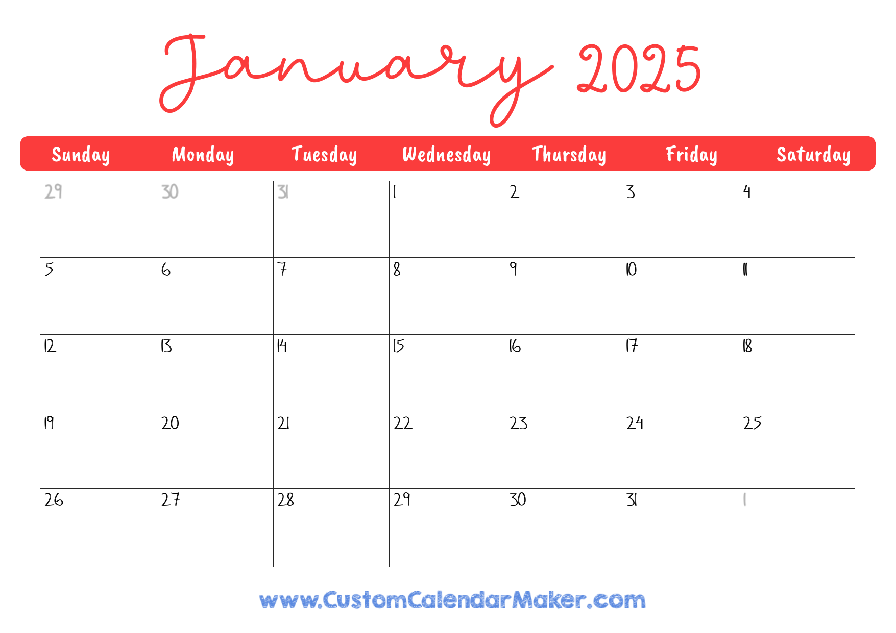 January 2025 Printable Calendar 23 Free Templates PDF Custom Calendar Maker