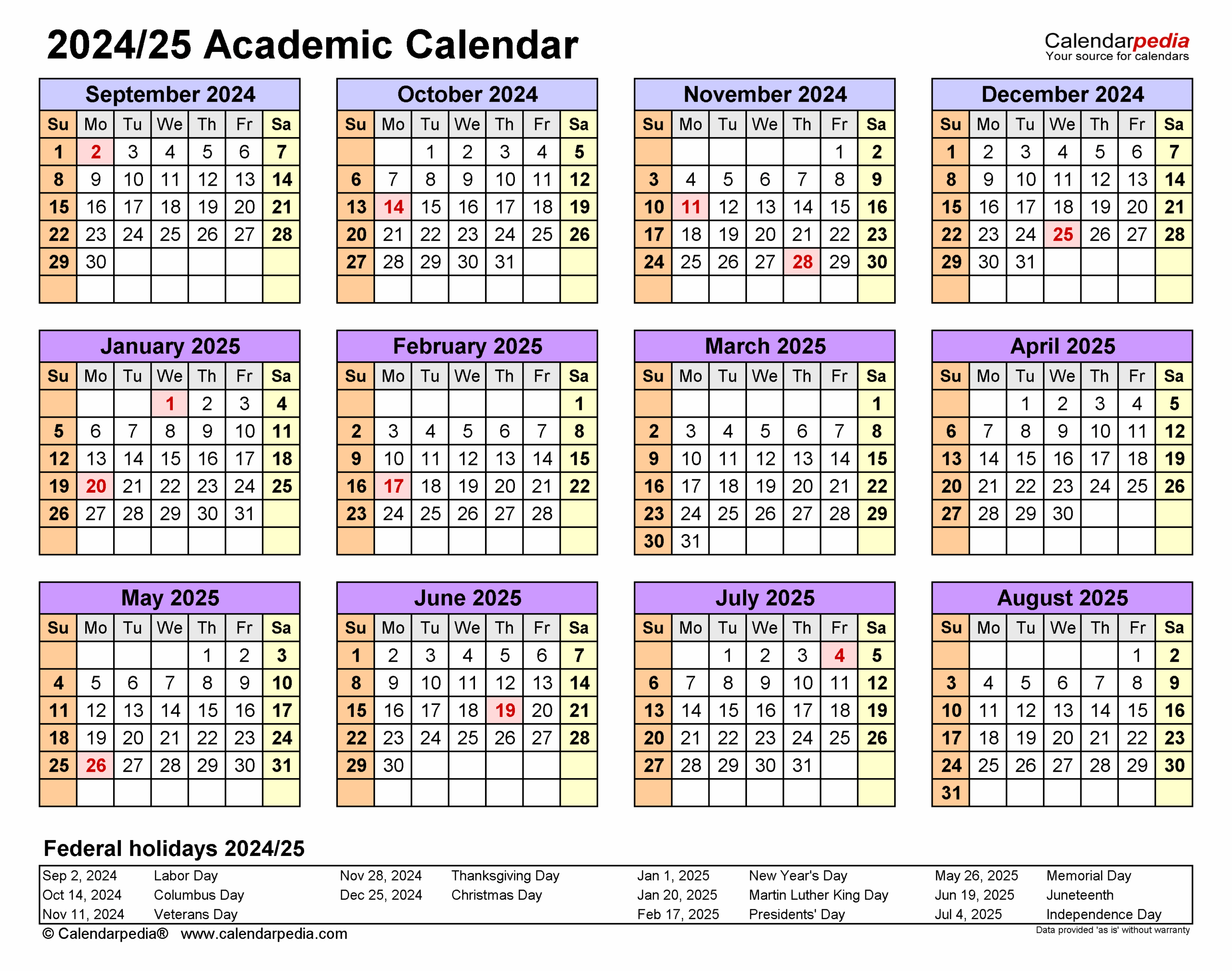 Academic Calendars 2024 2025 Free Printable Word Templates