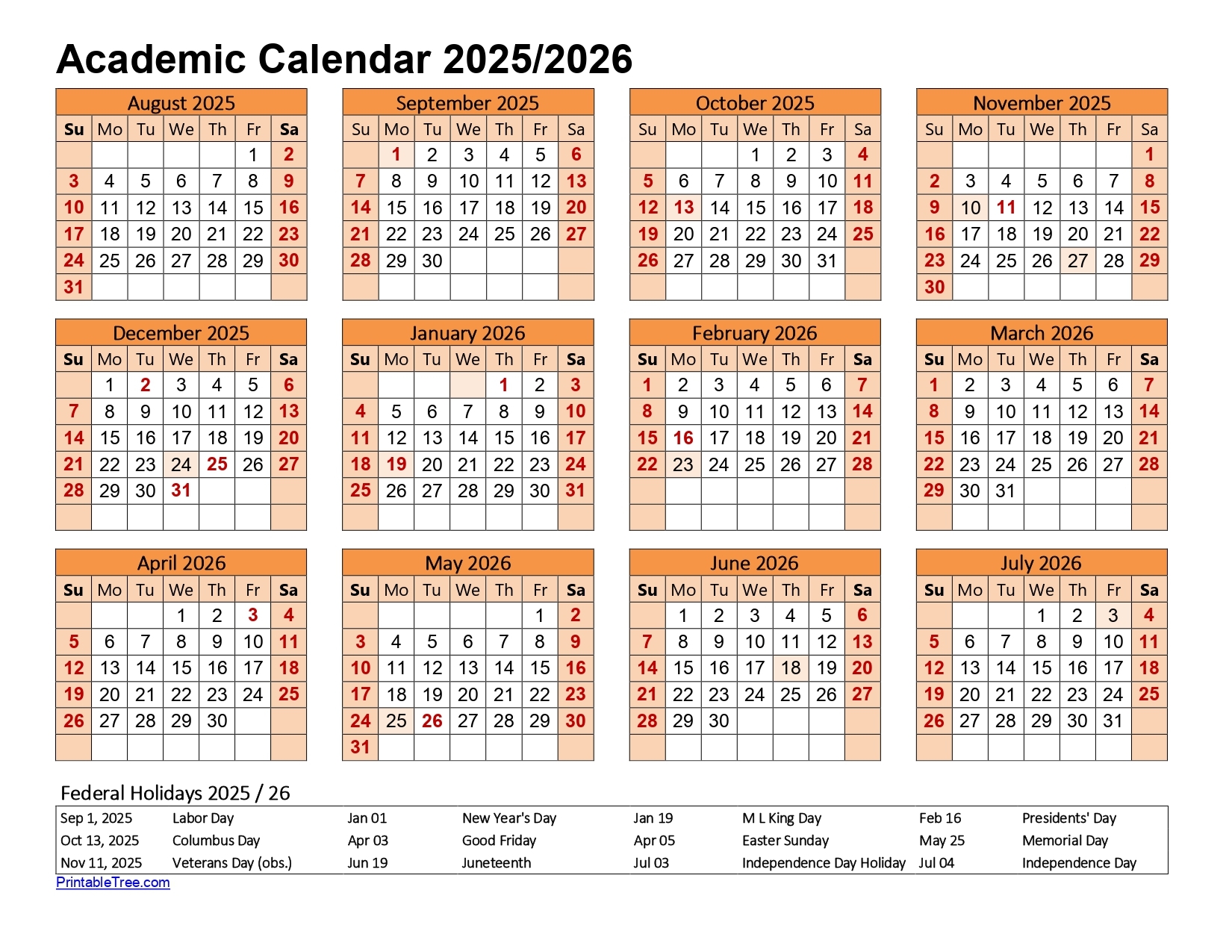 Free Printable Academic Calendar 2025 To 2026 Templates Printable Tree