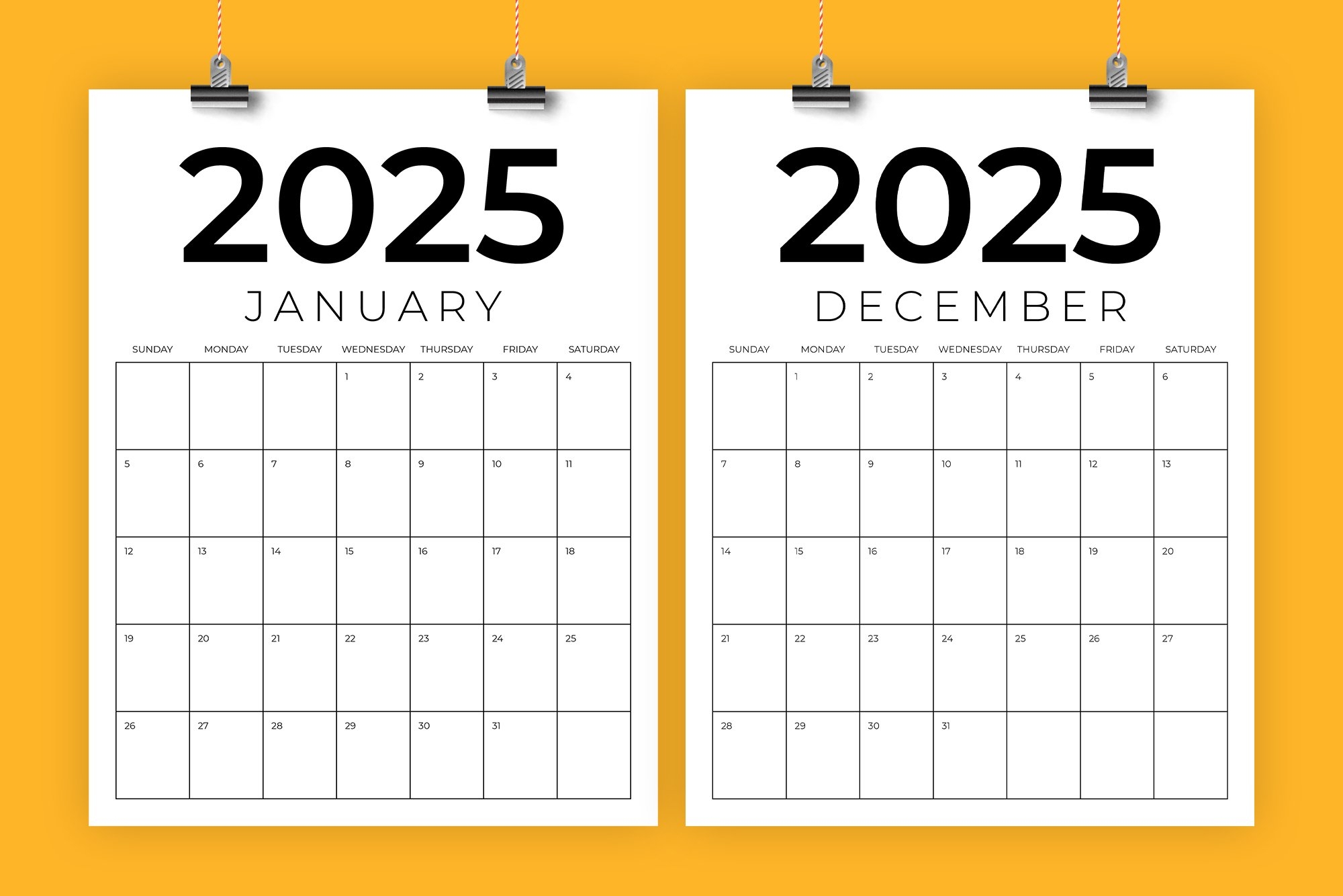 2025 Calendars PORTRAIT Blank Monthly Planner Fillable 8 5x11 Monday Sunday Start Vertical Minimalist Printable PDF Etsy