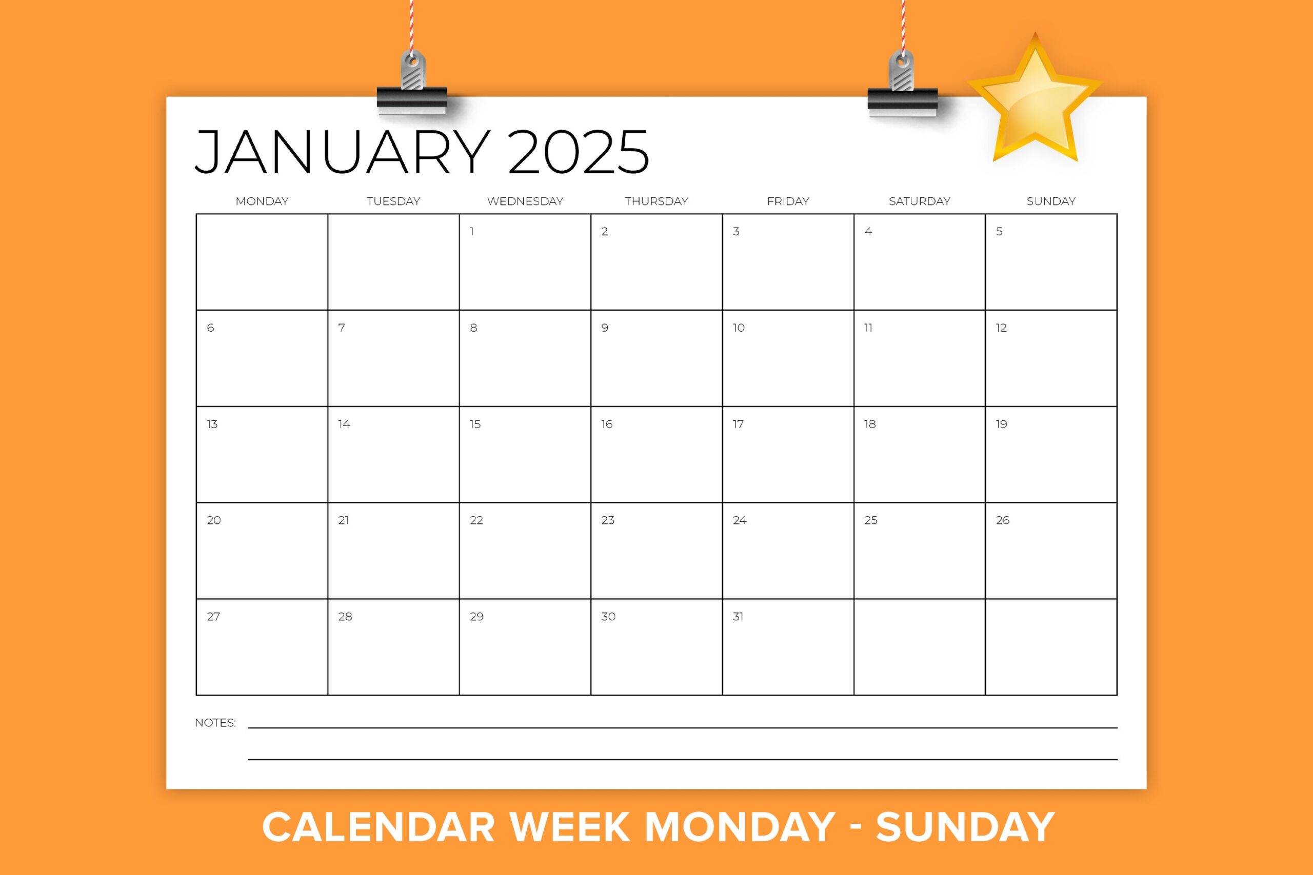 2025 A4 Thin Sans Serif MON SUN Calendar By Running With Foxes TheHungryJPEG
