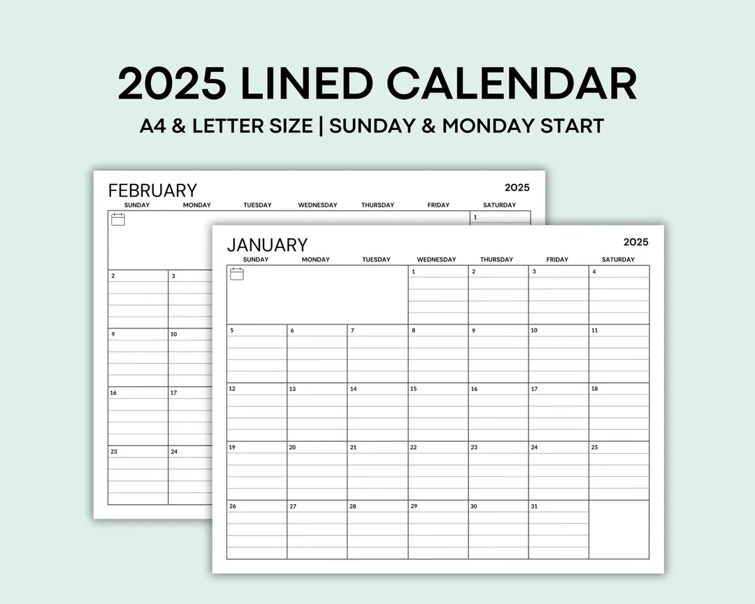 2025 Calendar Printable Lined Calendar 2025 Monthly Planner PDF Letter And A4 Size 2025 Minimalist Calendar Printable Monthly Schedule PDF Etsy