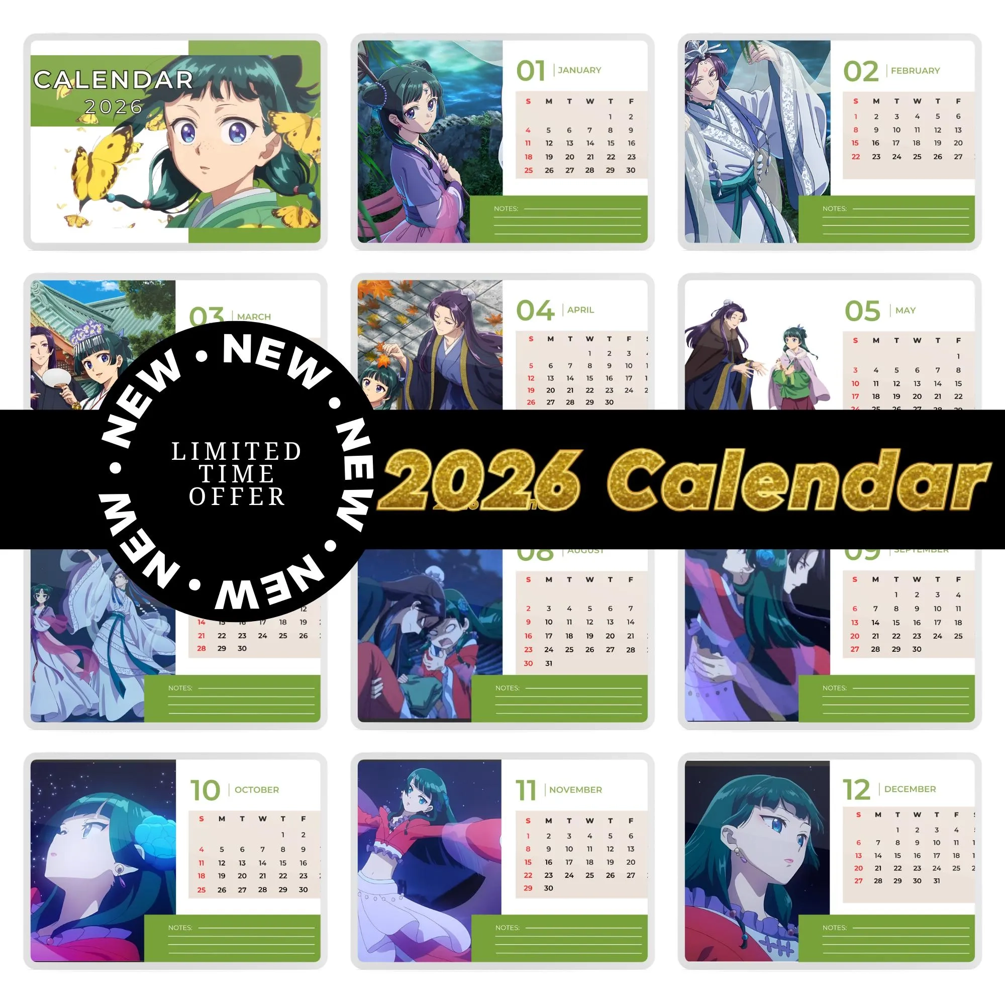 2026 Anime Calendar PDF Instant Download Cute Illustrated Printable Wall Calendar For Business Resell Or Personal Use A4 Size Landscape Etsy