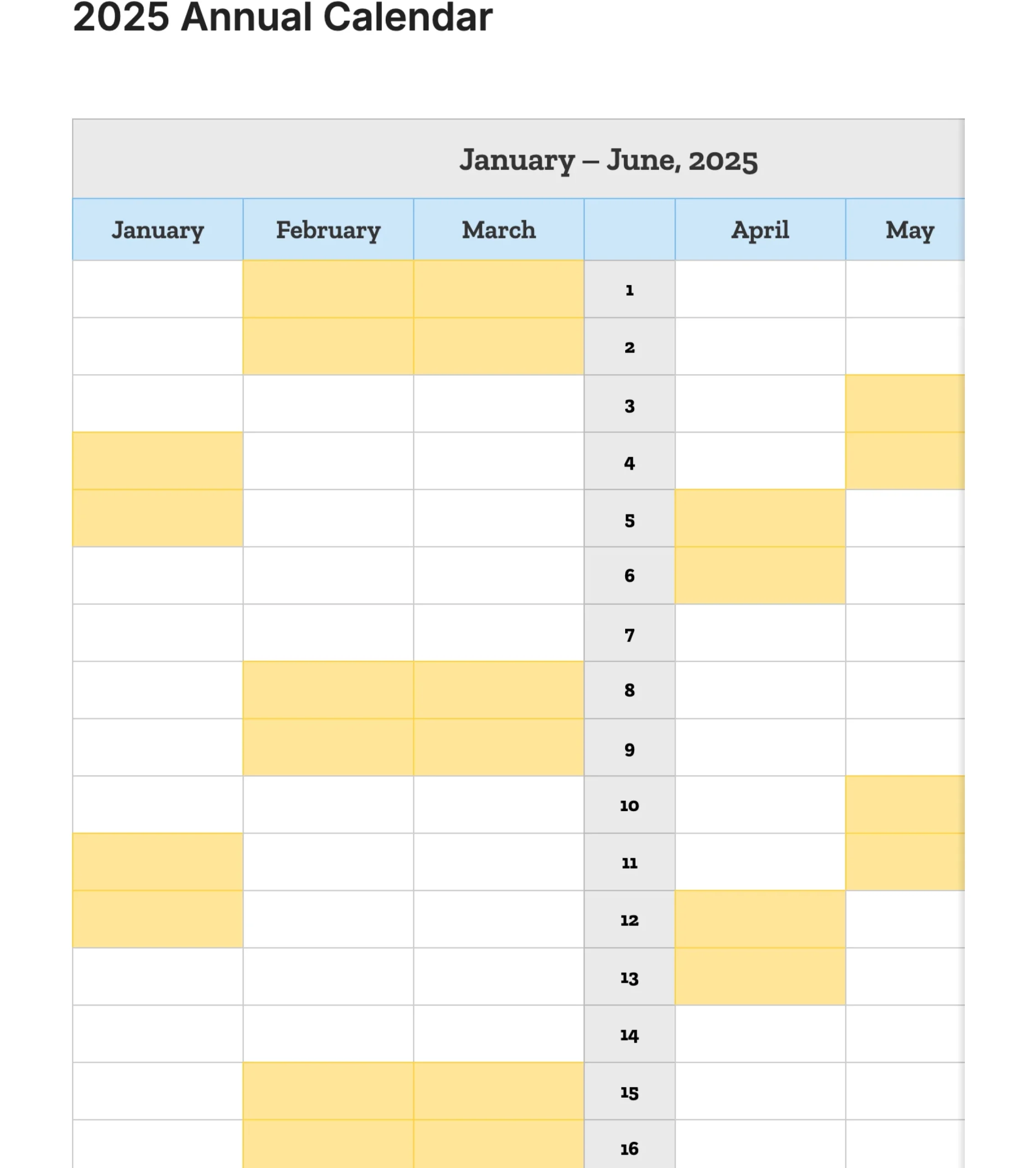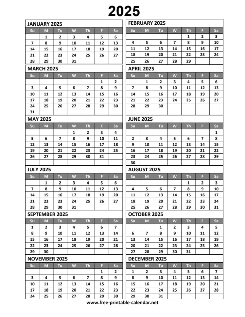 Are you looking for a blank annual calendar for 2025? Look no further! We have the perfect solution for you. With our free printable annual calendar template, you can stay organized and plan ahead for the upcoming year.