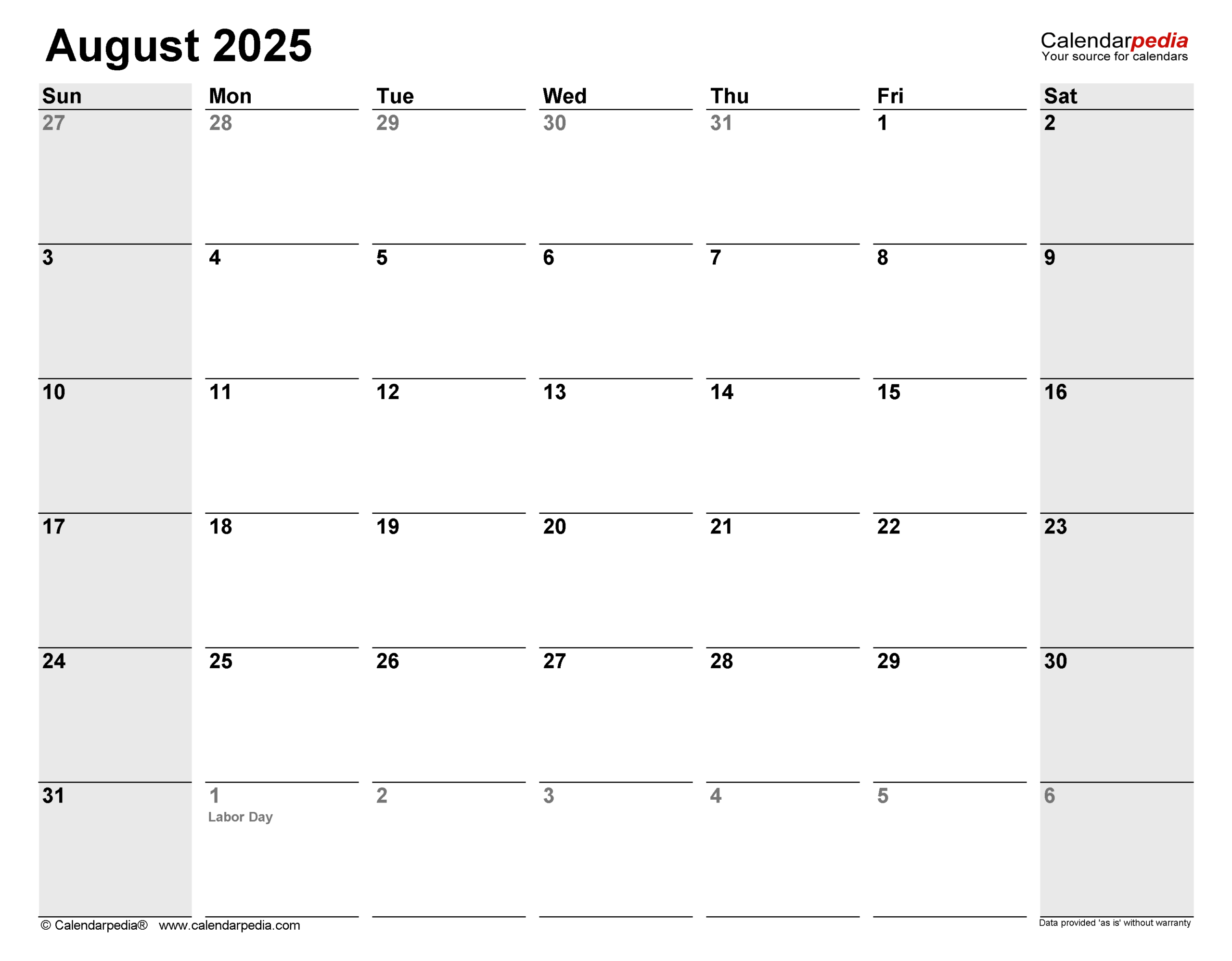 Don’t let the busyness of life overwhelm you. By using a blank calendar for August 2025, you can take control of your time and stay organized. Plan ahead, set reminders, and make the most of each day. Download your free blank calendar now and start planning for a productive month ahead!