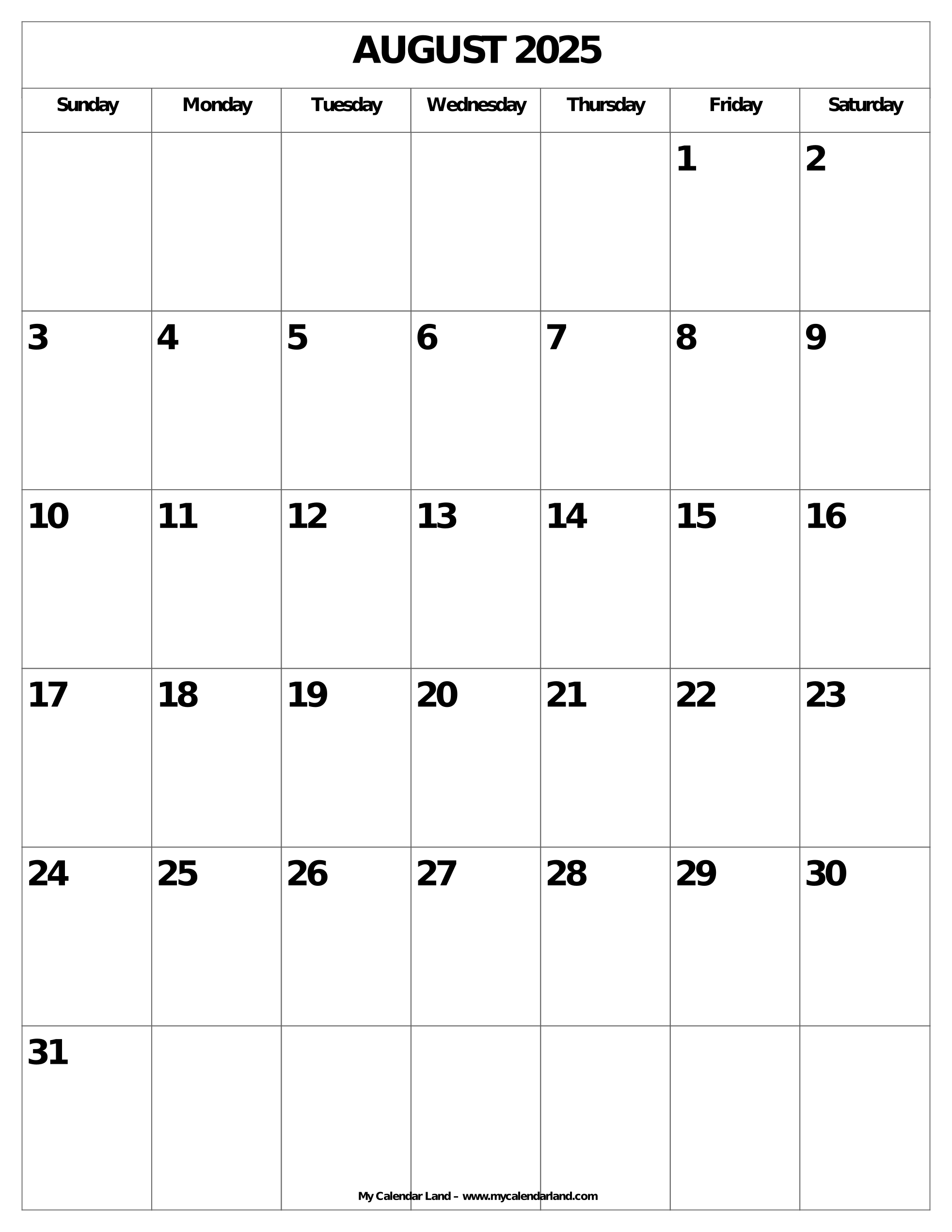 August 2025 Calendar My Calendar Land