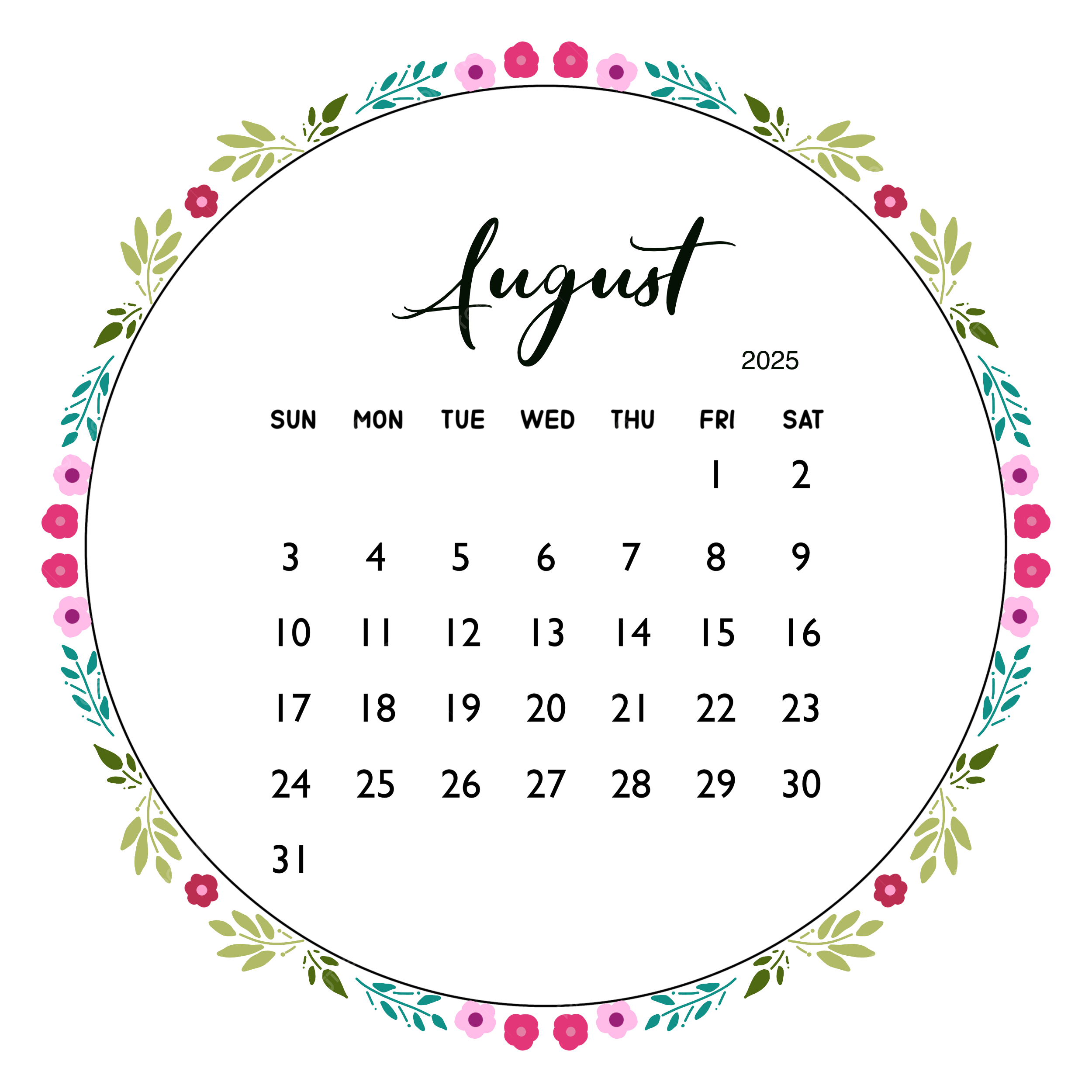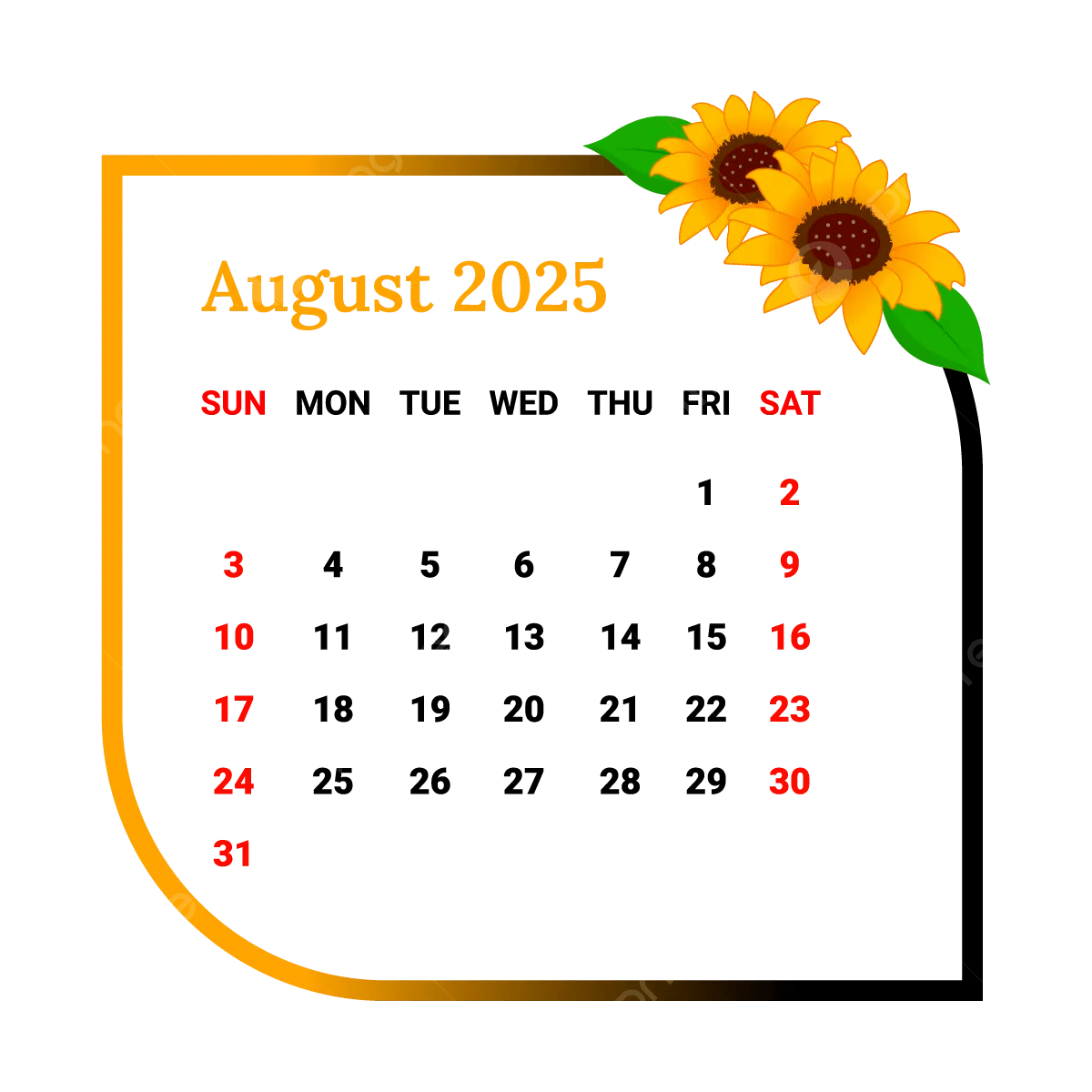 2025 August Calendar PNG Transparent Images Free Download Vector Files Pngtree
