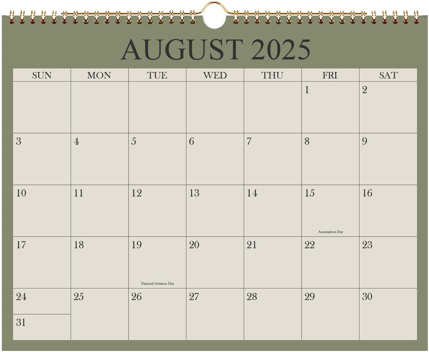 Amazon Calendar 2025 2026 Wall Calendar 2025 2026 From August 2025 December 2026 17 Months Calendar With Premium Paper Twin Wire Binding Hanging Hook 8 5 X 11 Green Office Products