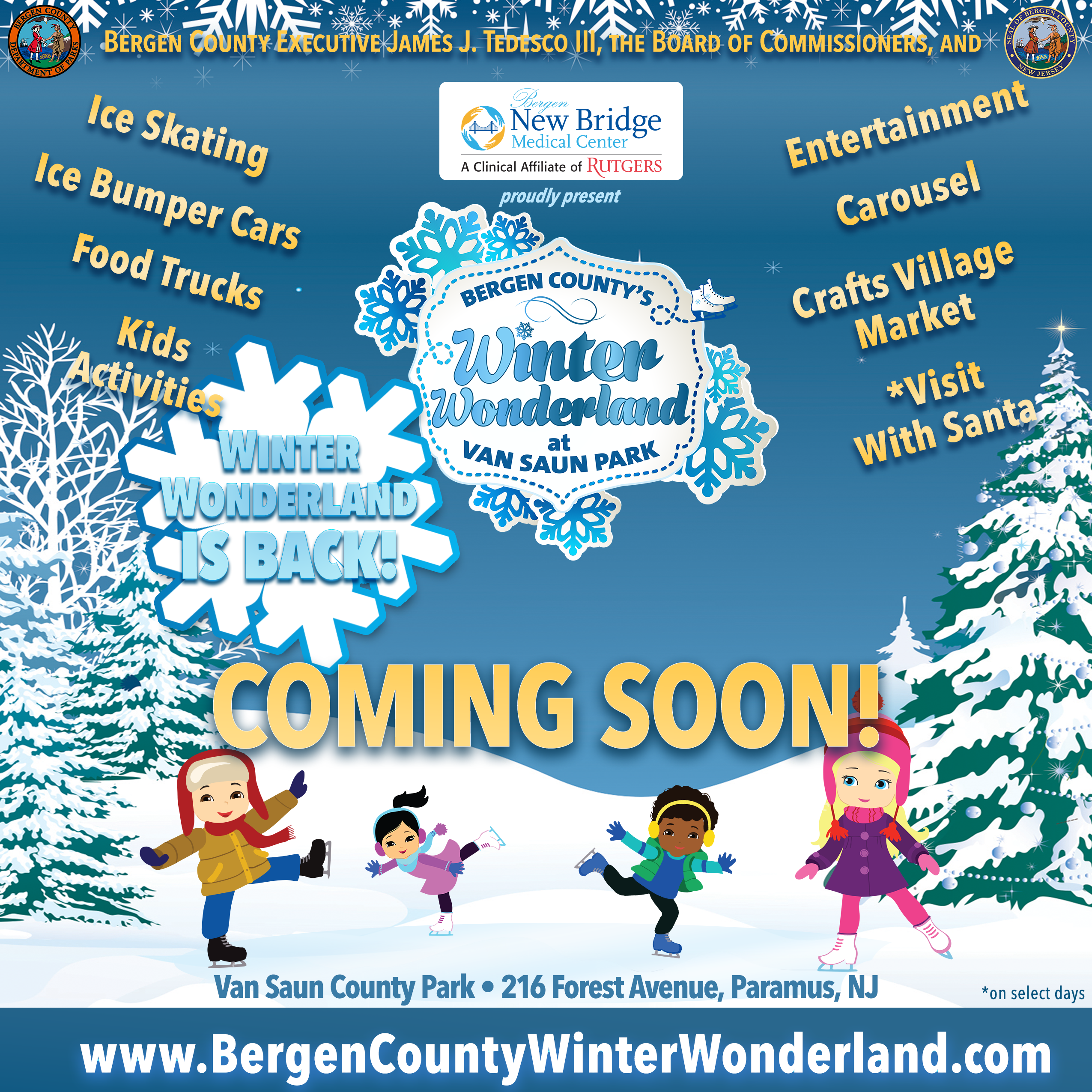 Start the new year off right by attending the Winter Wonderland Festival in Bergen County. Enjoy ice skating, delicious food trucks, and live music. This family-friendly event is perfect for all ages and is sure to be a hit!