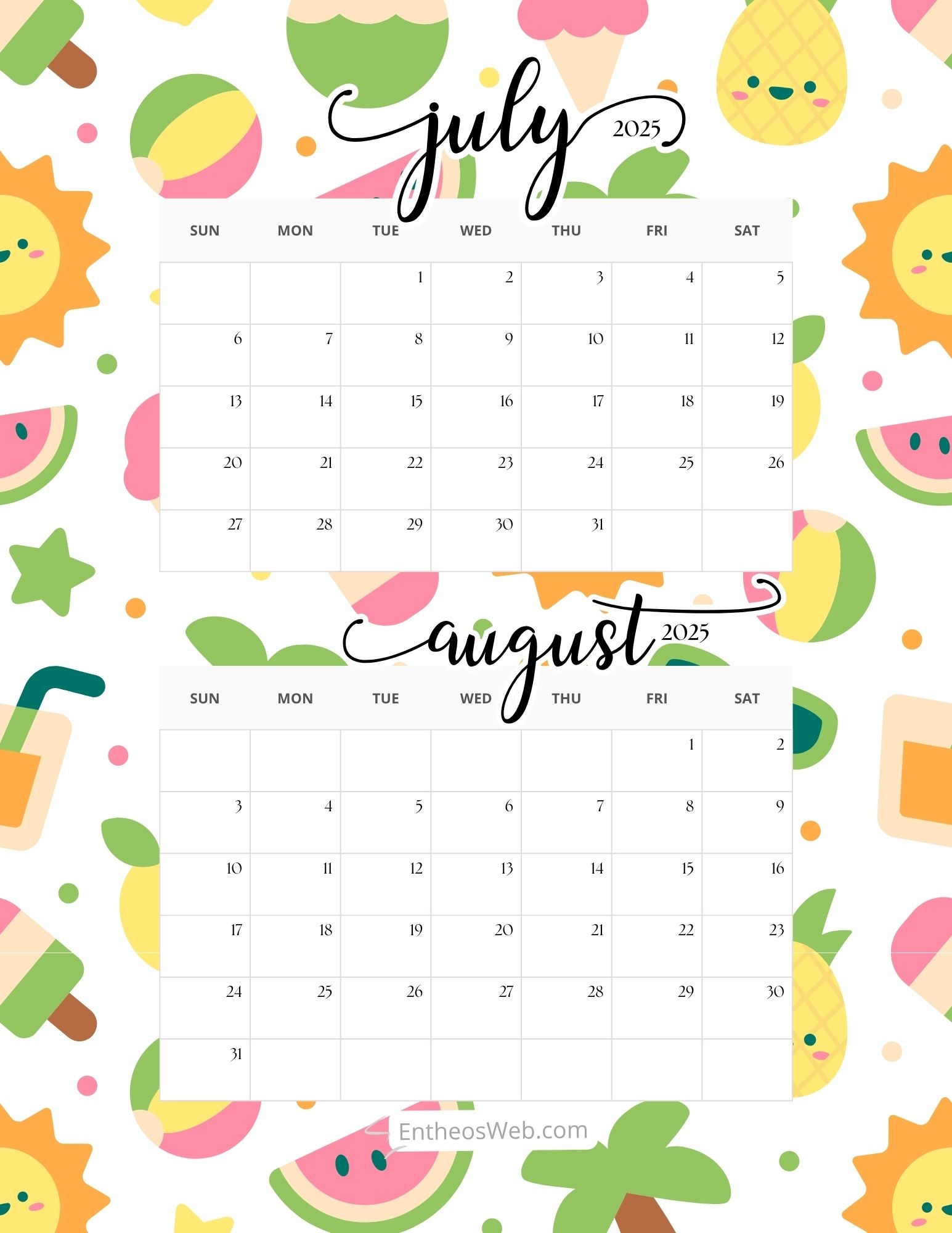 Printable June And July 2025 Calendar Free PDF JPG Downloads