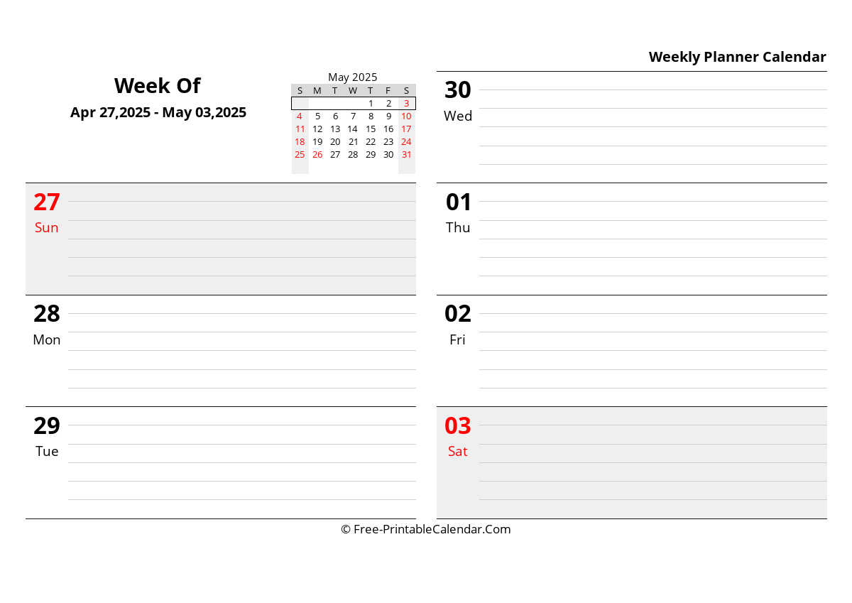 2025 Weekly Calendar Template In Excel PDF And Word