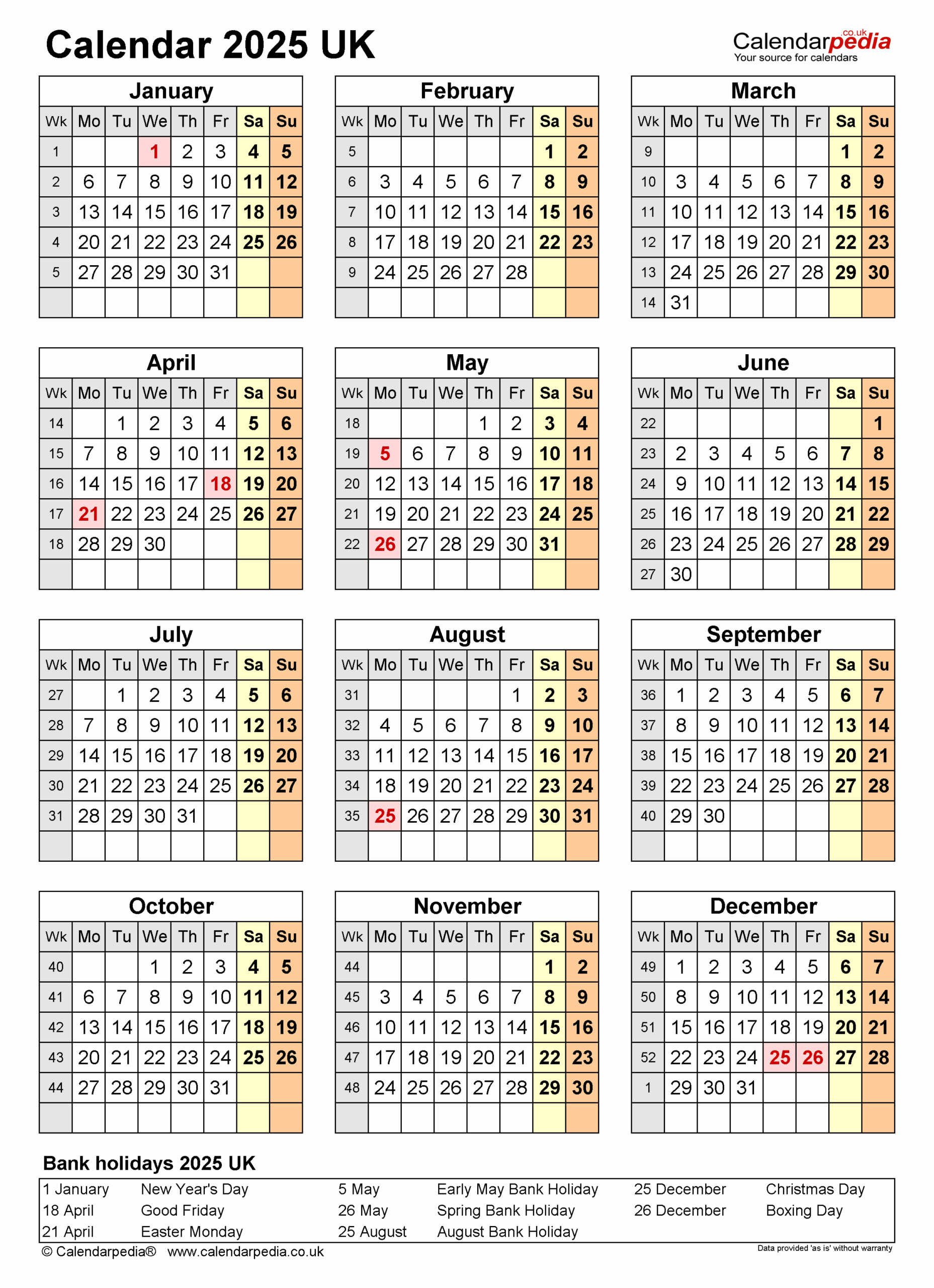 Calendar 2025 UK Free Printable Microsoft Word Templates