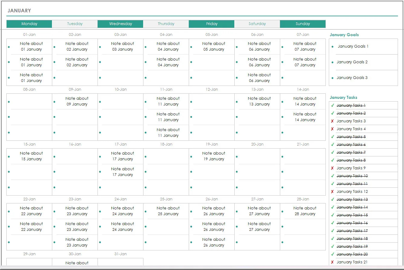 2025 Monthly Calendar Excel Template Goals Tasks printable Etsy