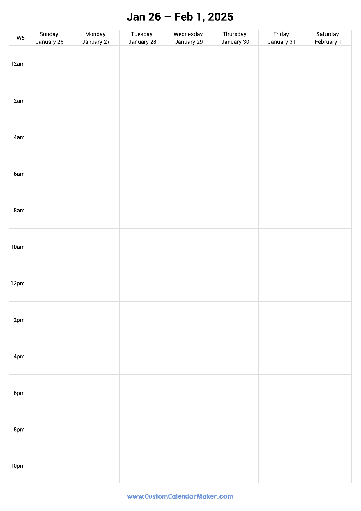 Weekly Calendar February 2025 Custom Calendar Maker
