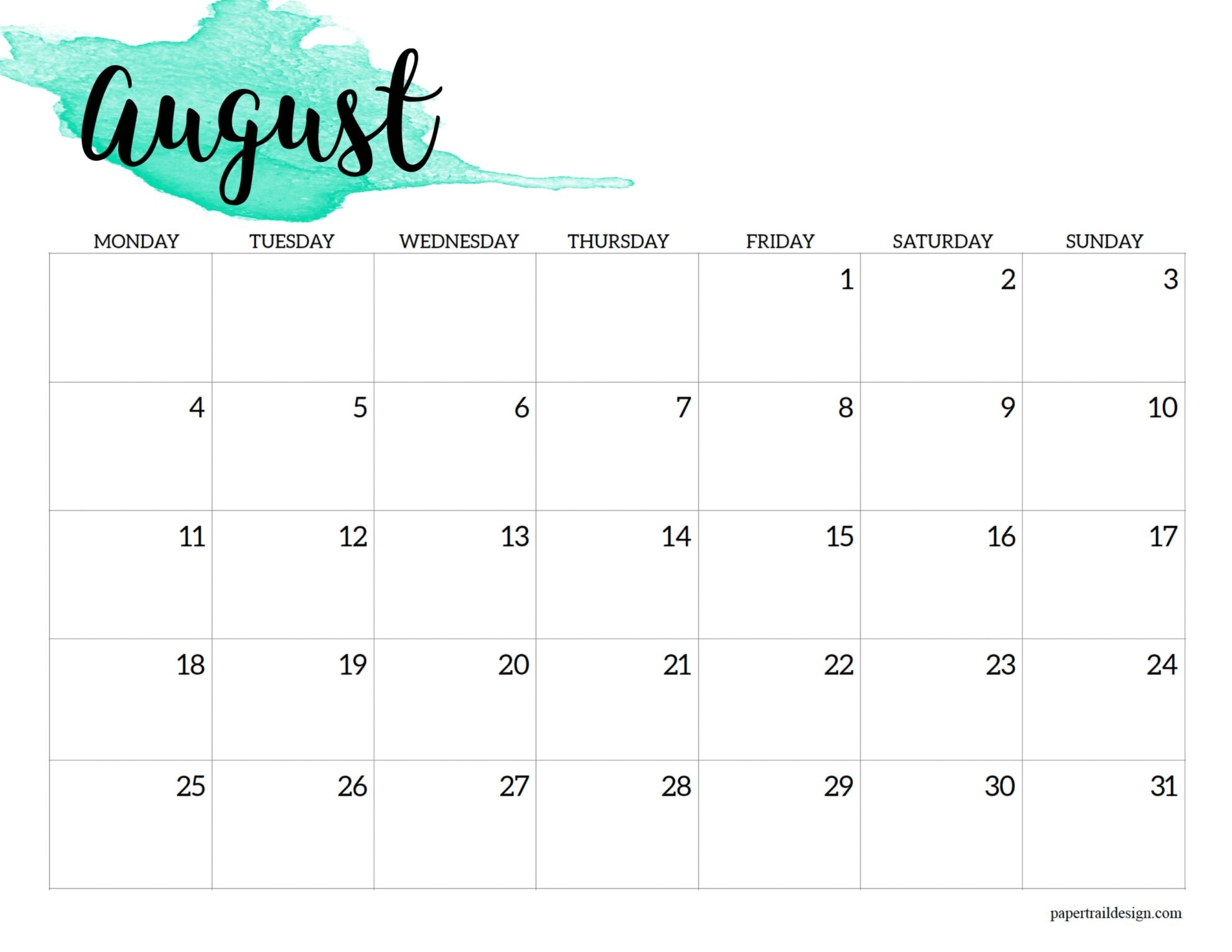 2025 Monday Start Calendar Printable Watercolor Paper Trail Design