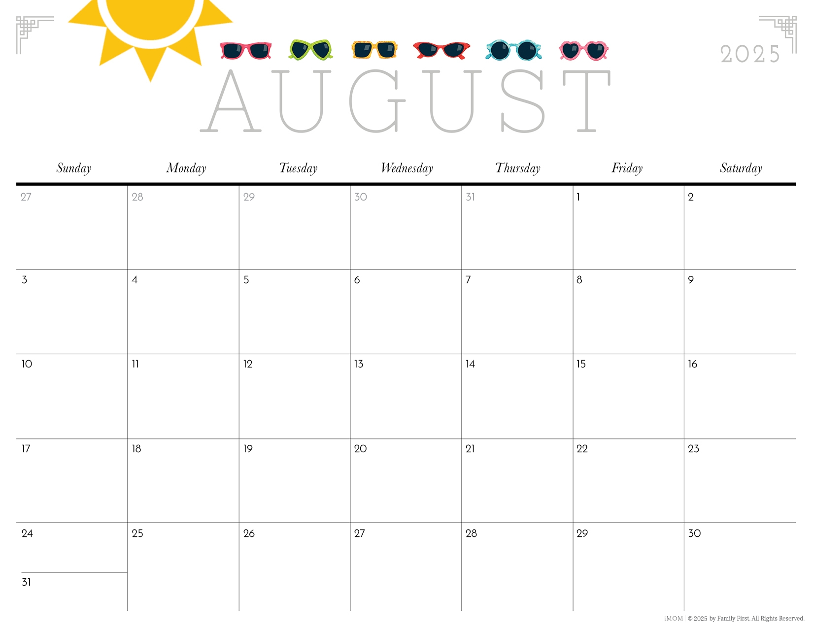 August Month Calendar 2025 Vector Template Download On Pngtree