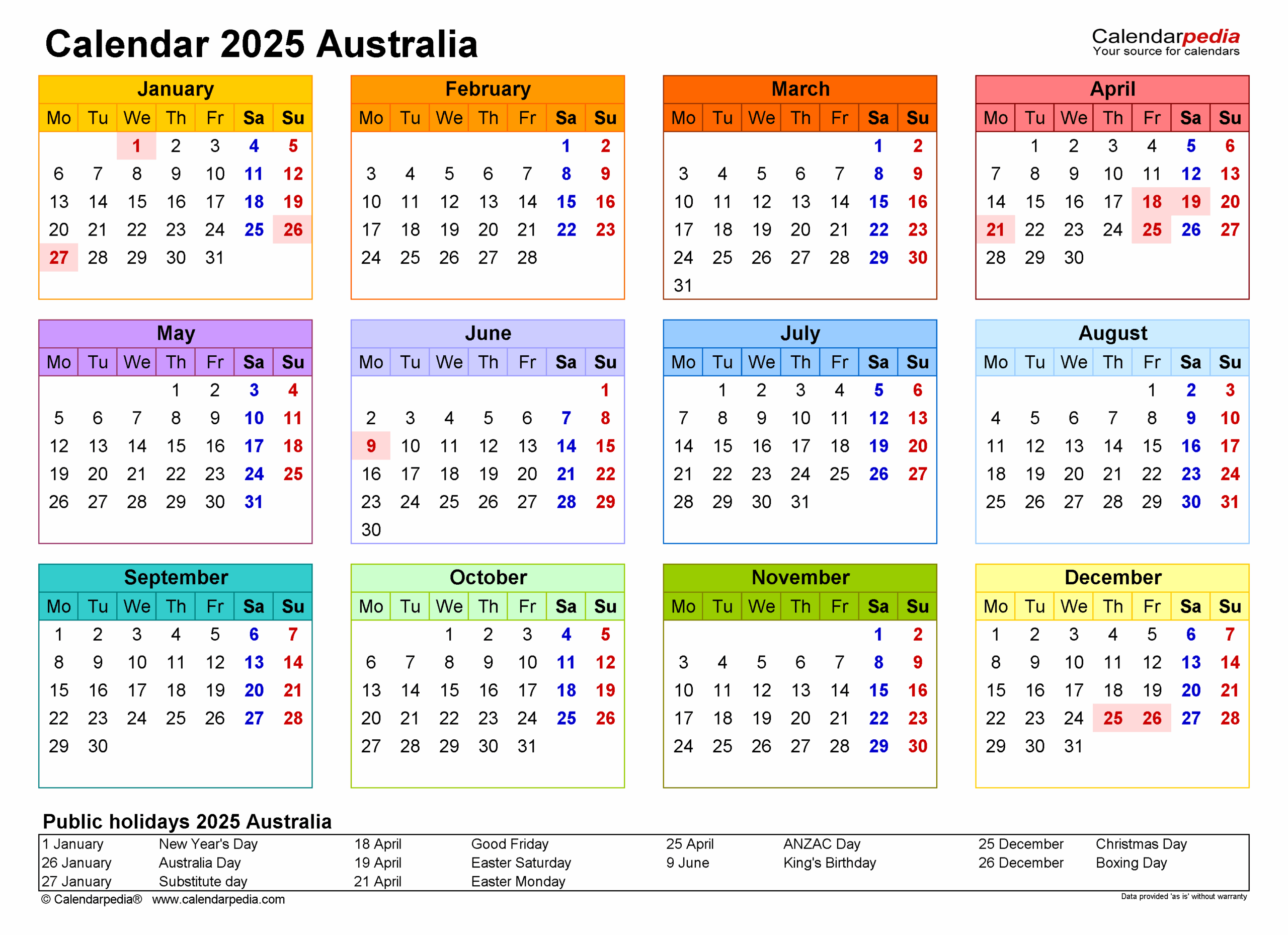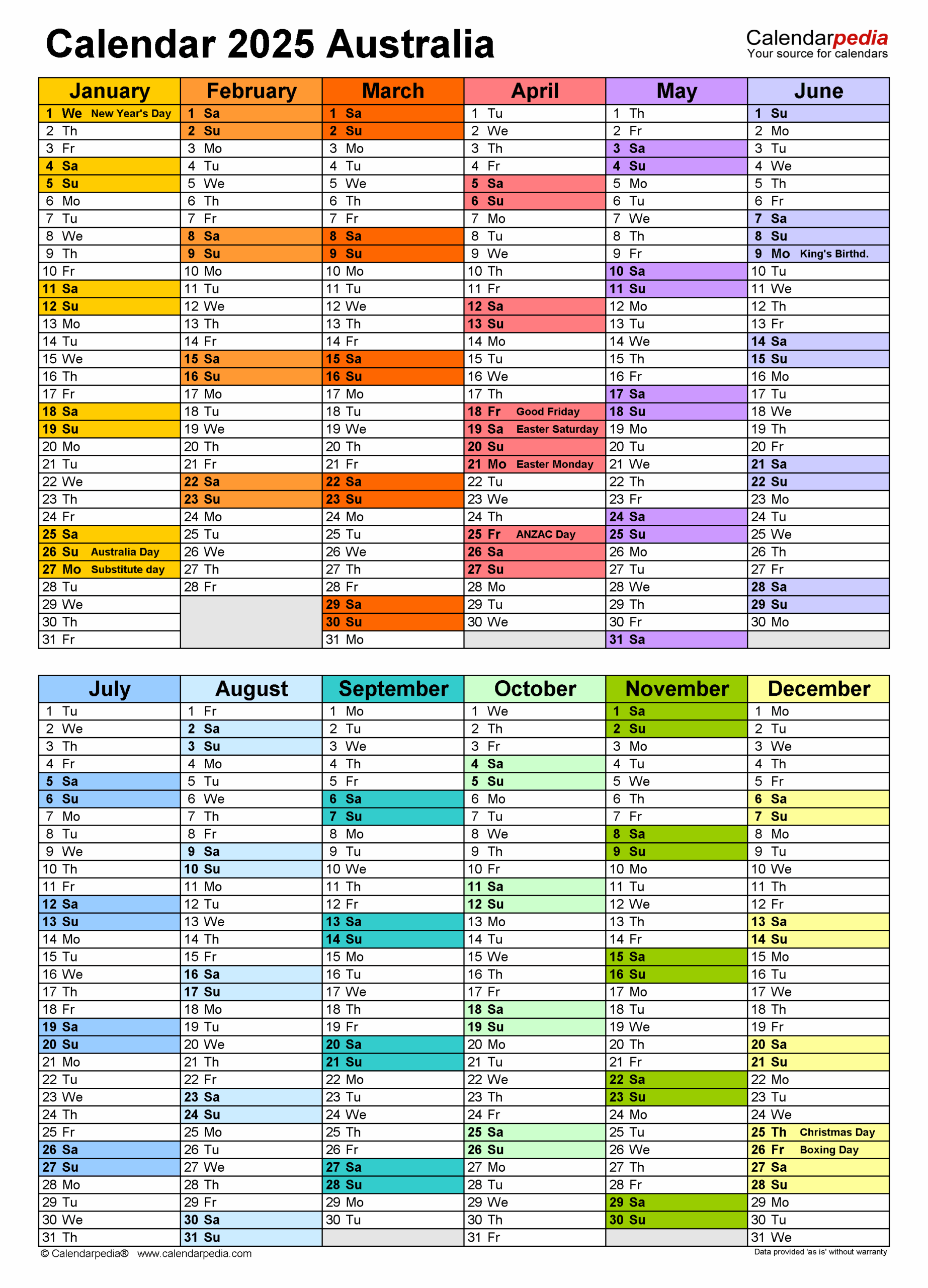 Australia Calendar 2025 Free Printable PDF Templates