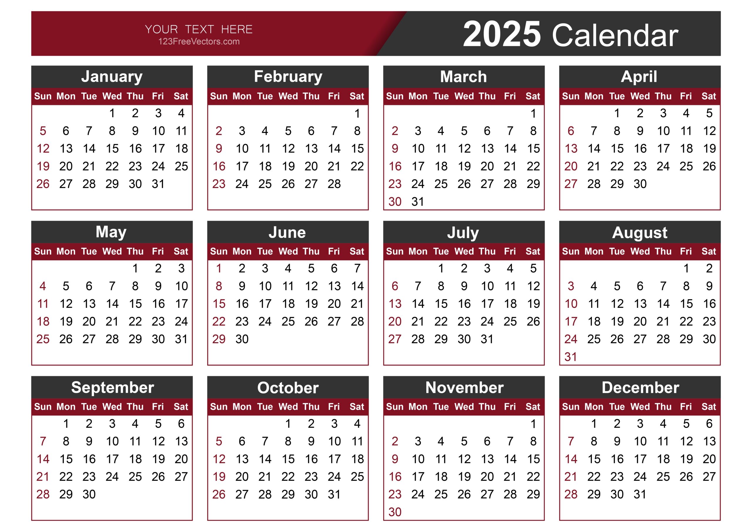 Free Download 2025 Calendar PDF Download