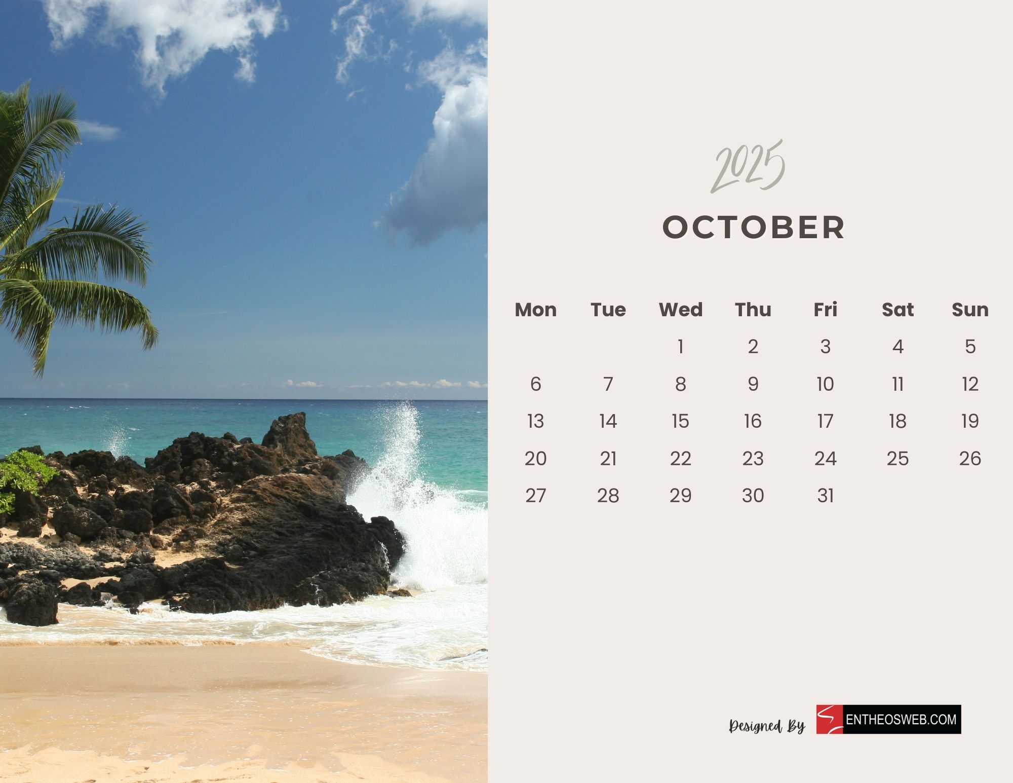 2025 Monthly Calendar Beaches EntheosWeb