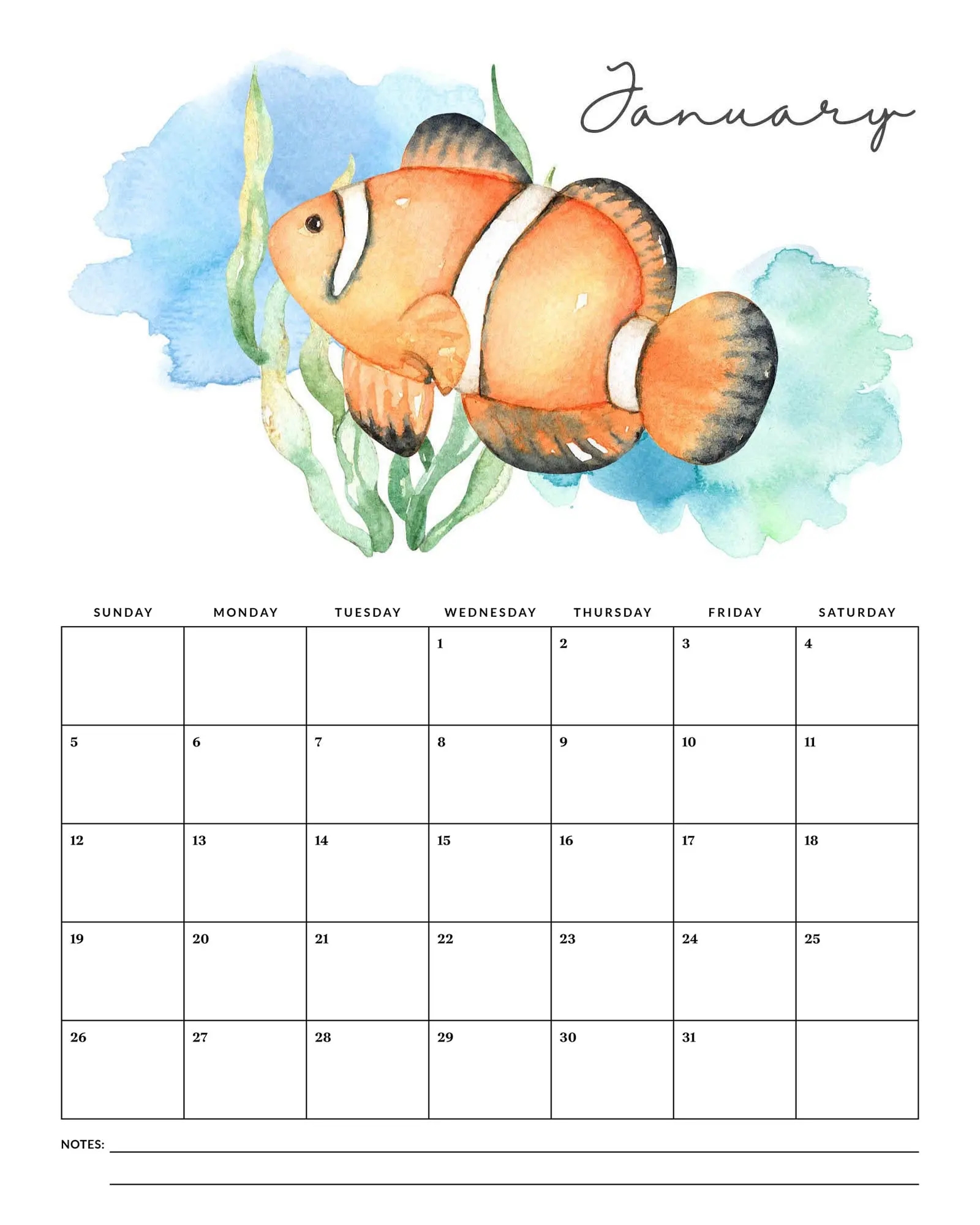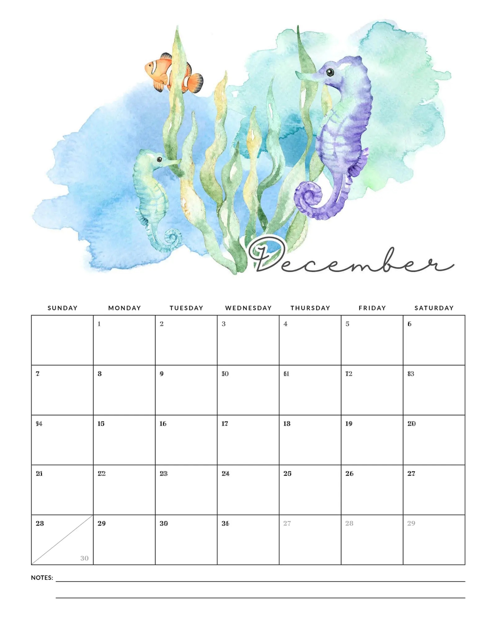 Free Printable 2025 Under The Sea Calendar The Cottage Market