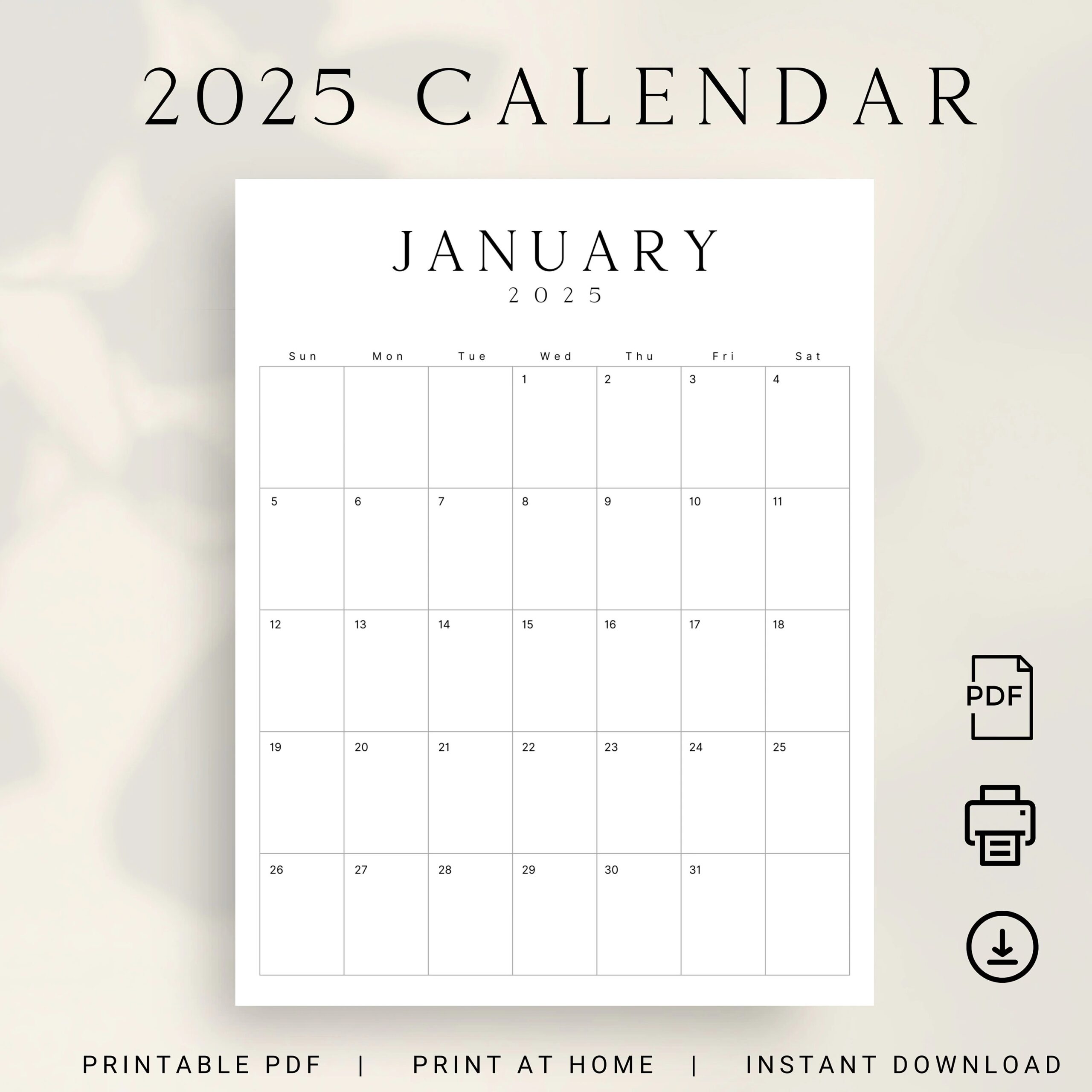 2025 Calendar Printable 2025 Monthly Planner Portrait 2025 LUXE Monthly Calendar Vertical A4 Letter Size Sunday Monday Start Calendar PDF Etsy