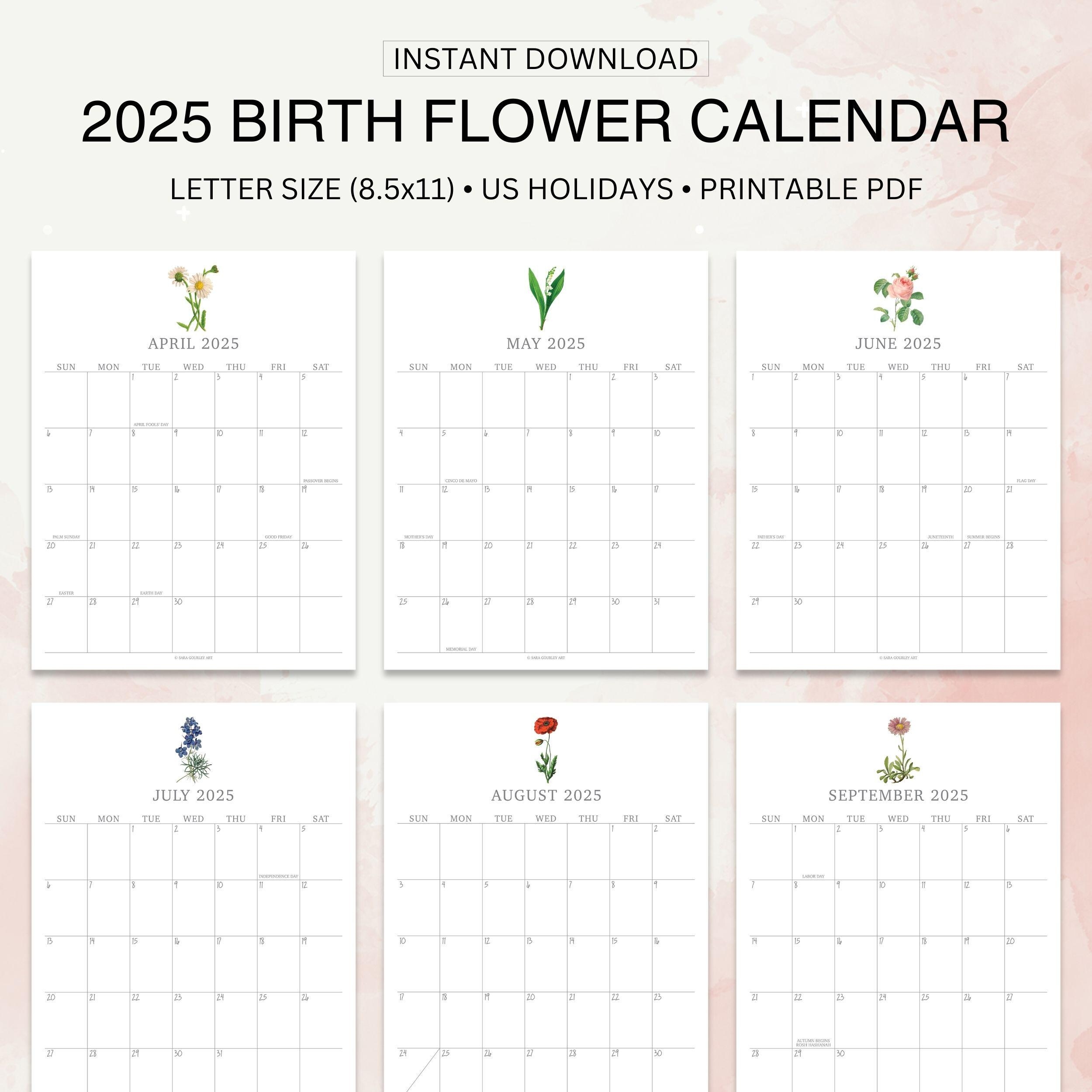 2025 Calendar Printable Birth Month Flowers Digital Download Wall Calendar Monthly Calendar Botanical Calendar Holidays Included Etsy