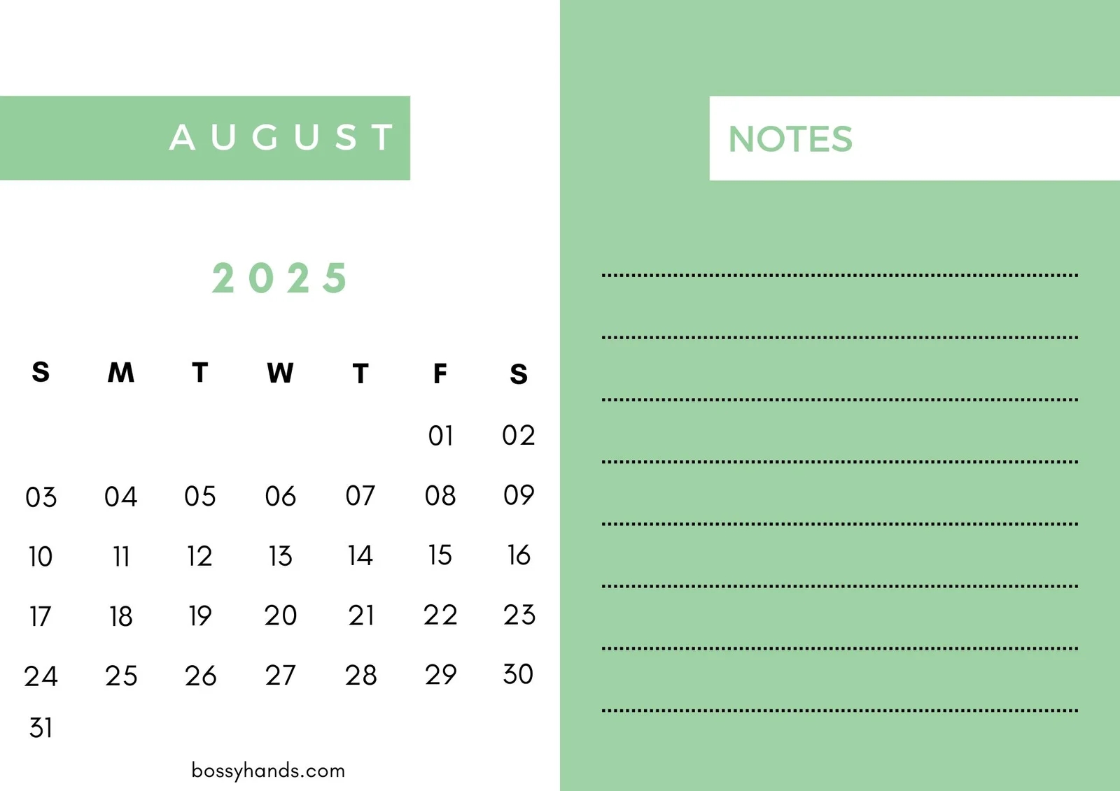 2025 Horizontal Calendar Template With Notes