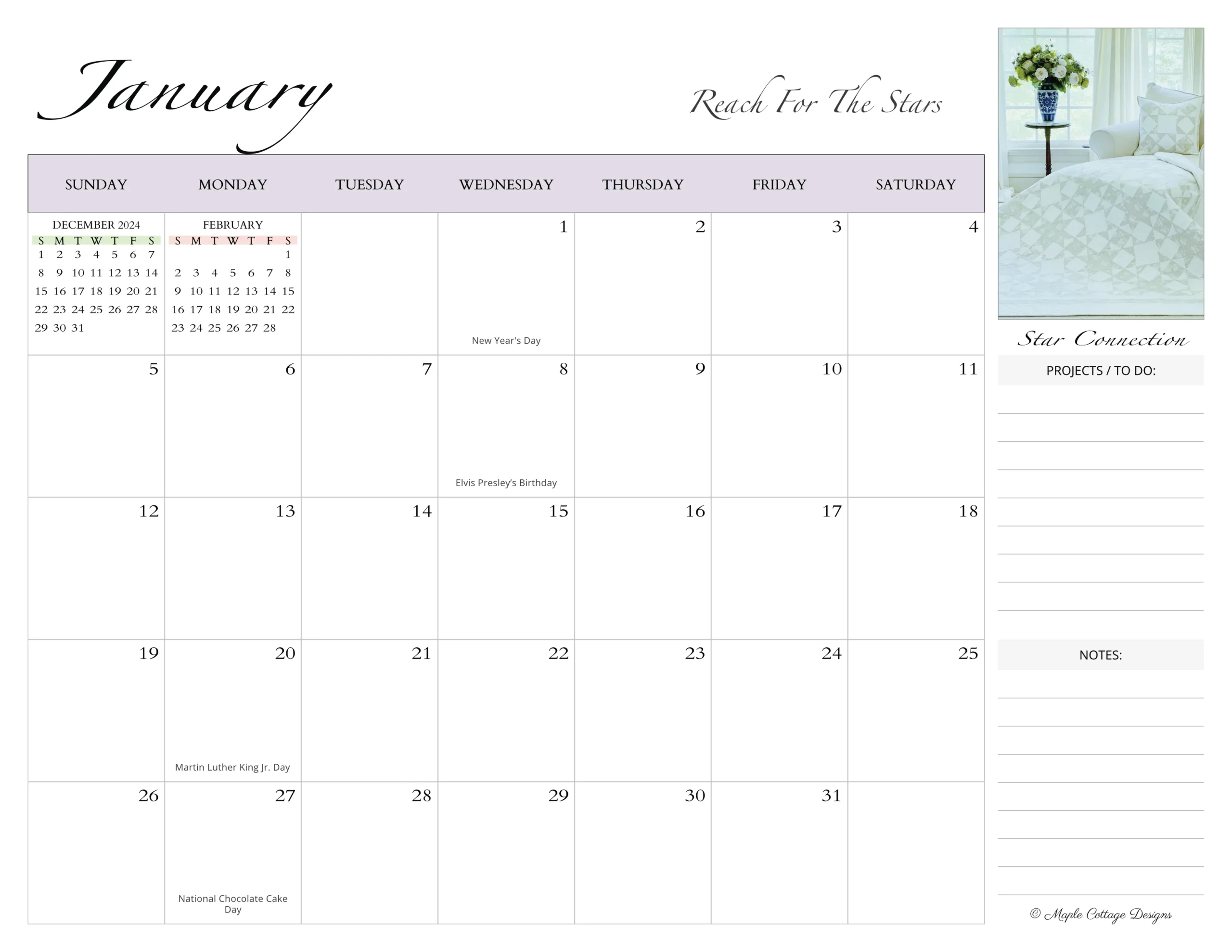 Free 2025 Printable Calendar PDF Maple Cottage Designs