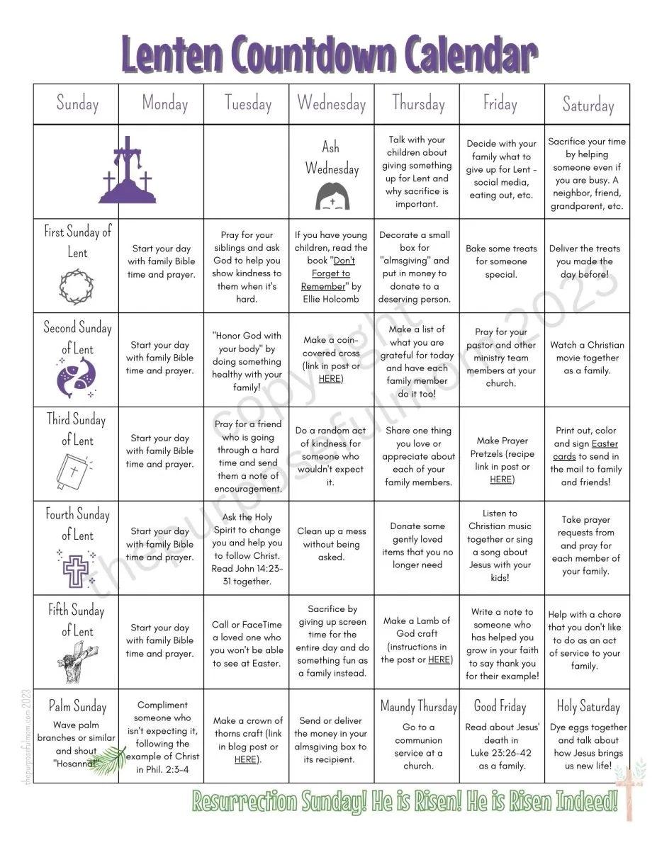 Free Printable Lent Calendar 2024 The Purposeful Mom