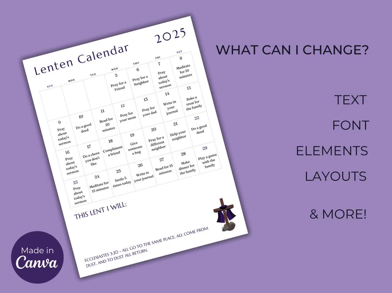 Lenten Calendar 2025 Printable Lenten Prayer Calendar Easter Countdown Customizable Lenten Calendar Ash Wednesday Planner Etsy